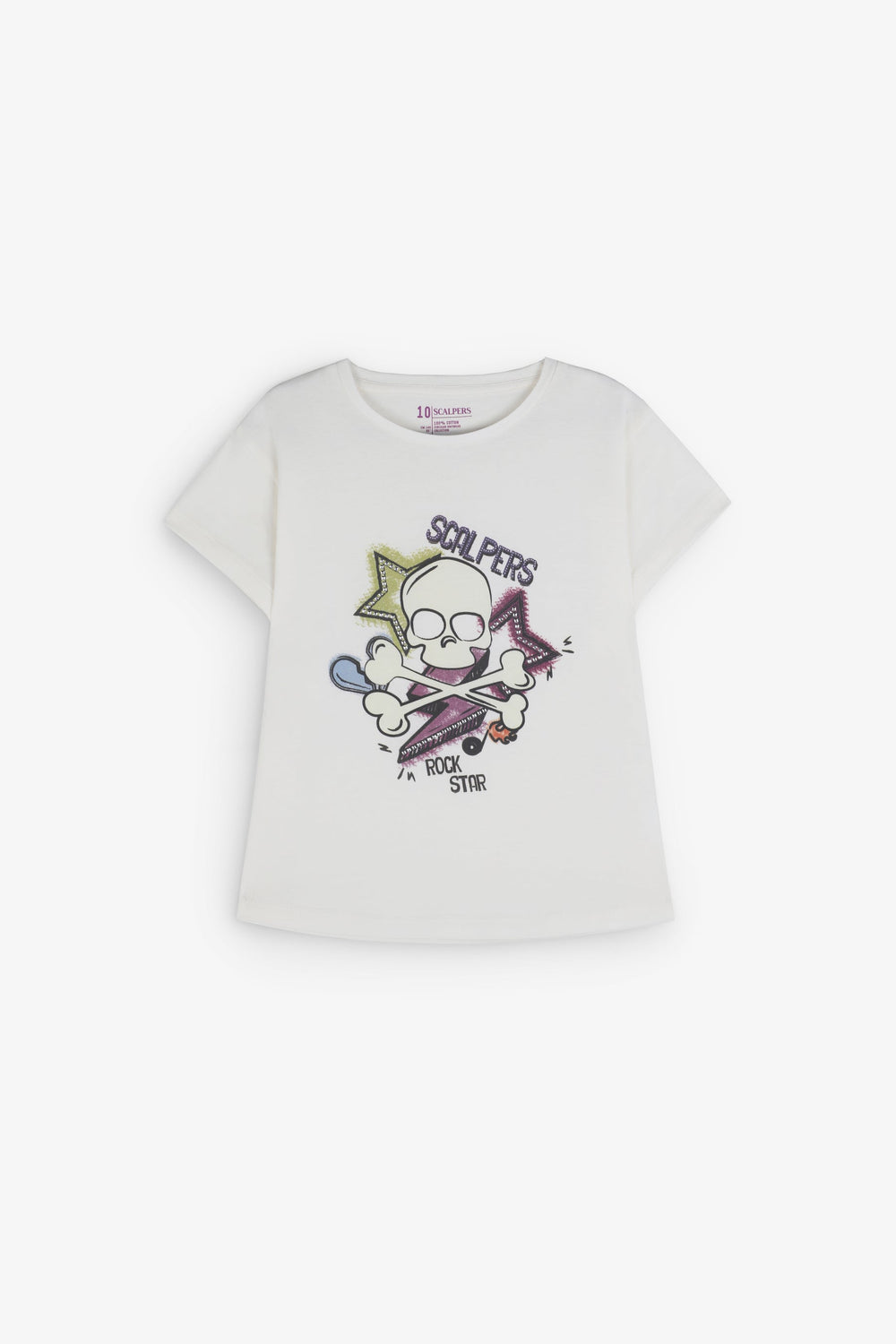 T-shirt with a skull and stars print made of 100% BCI cotton. Regular fit, round neck and short sleeves.