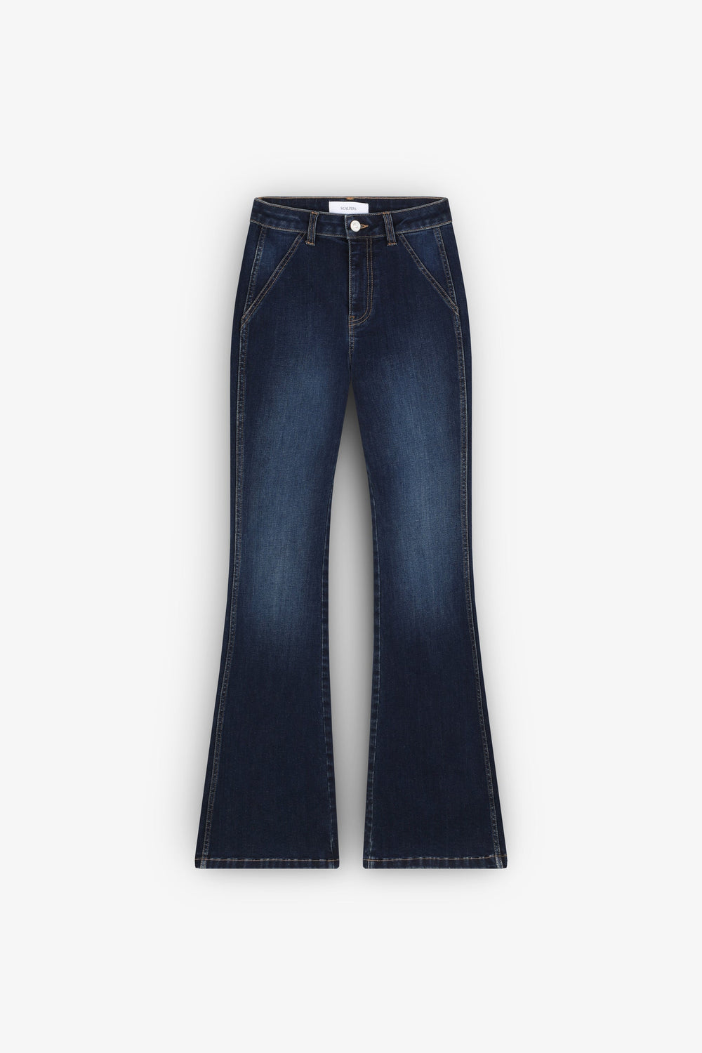 Jeans made of slightly stretchy fabric. Bootcut, high waist and zip and button fastening. Back and front pockets and belt loops.