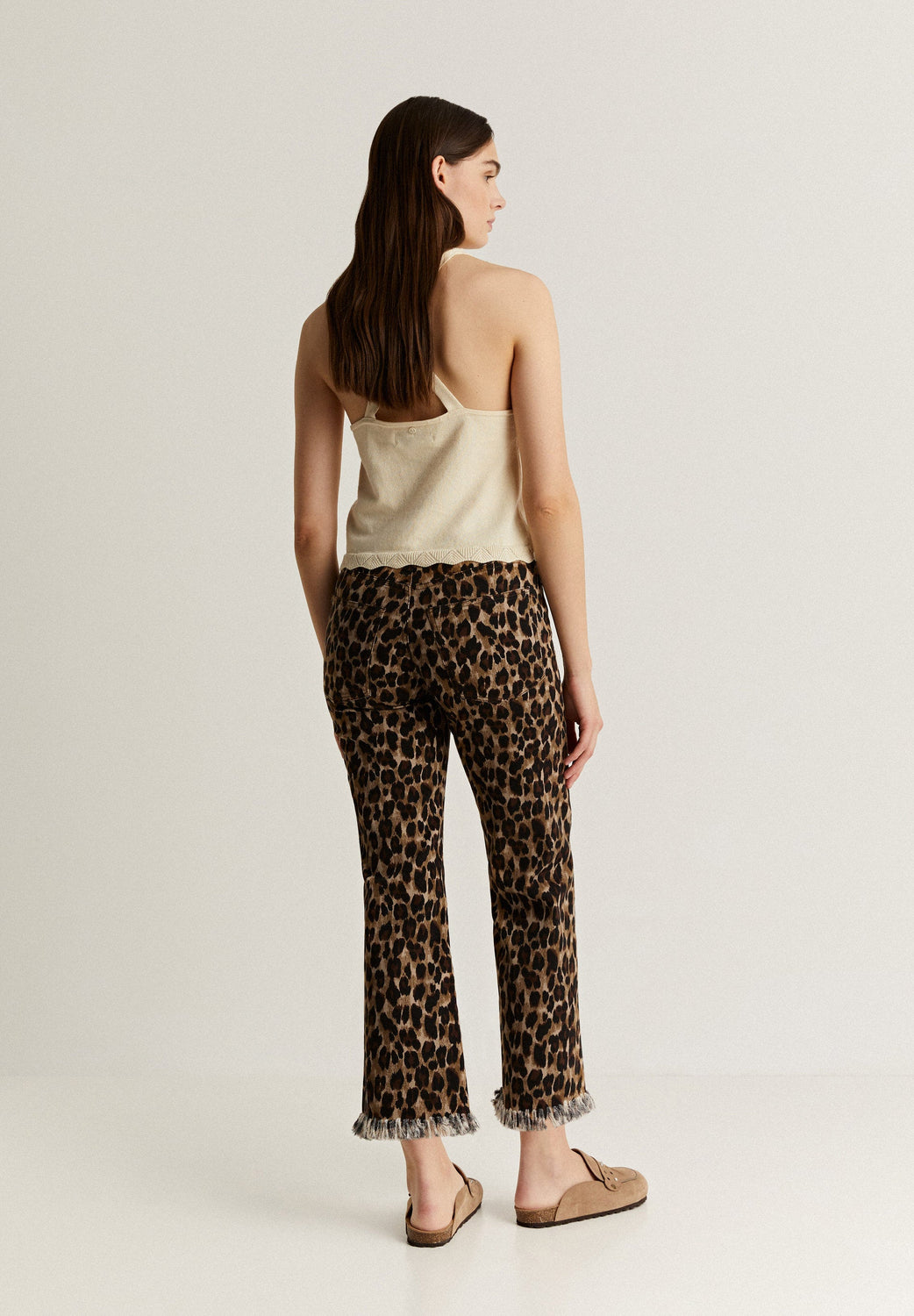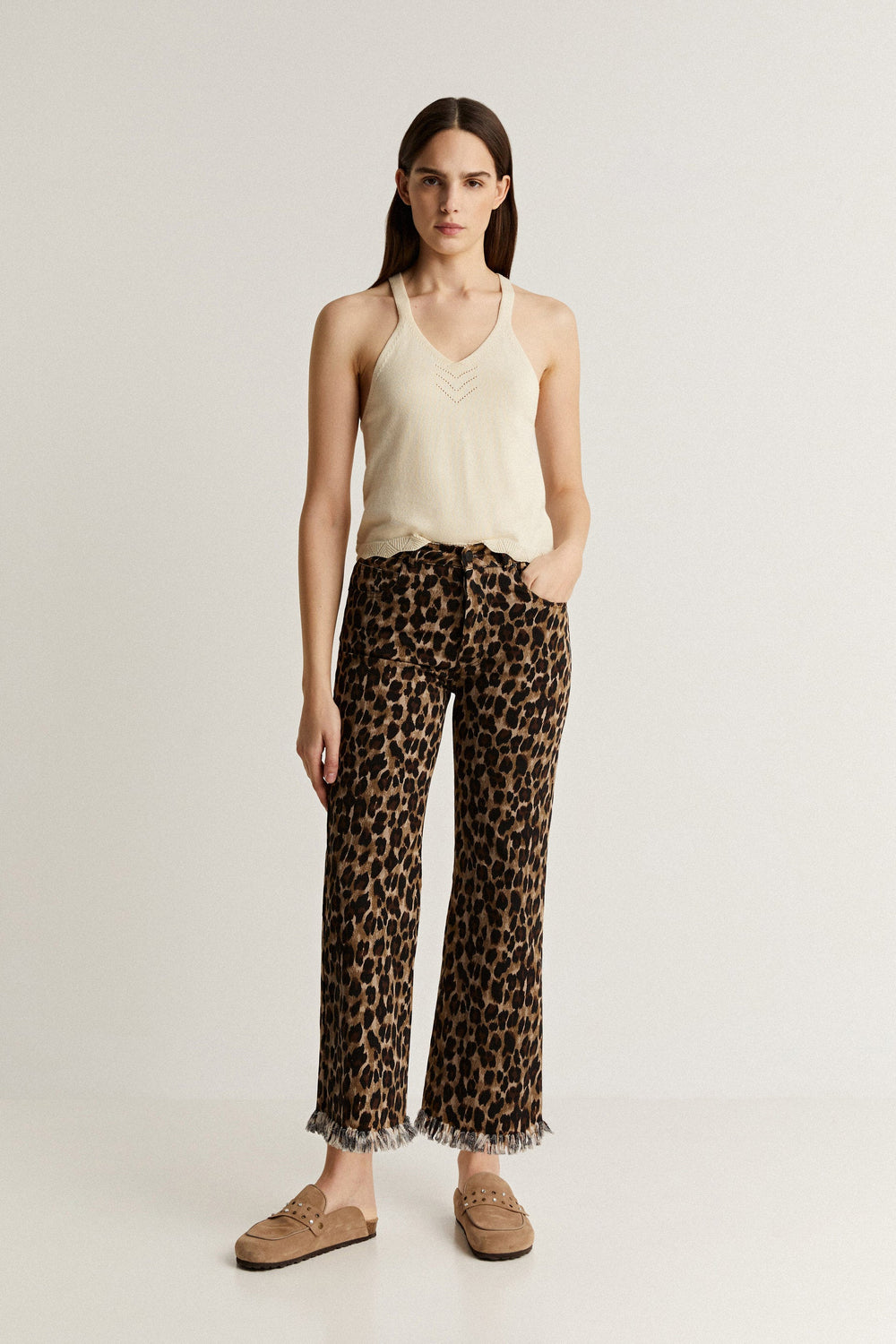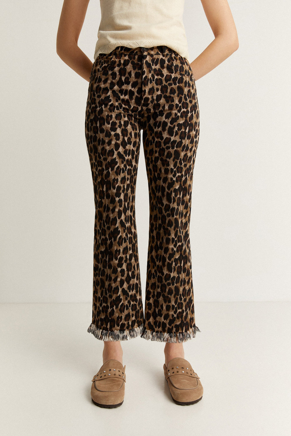 ANIMAL PRINT TROUSERS WITH FRAYED HEM