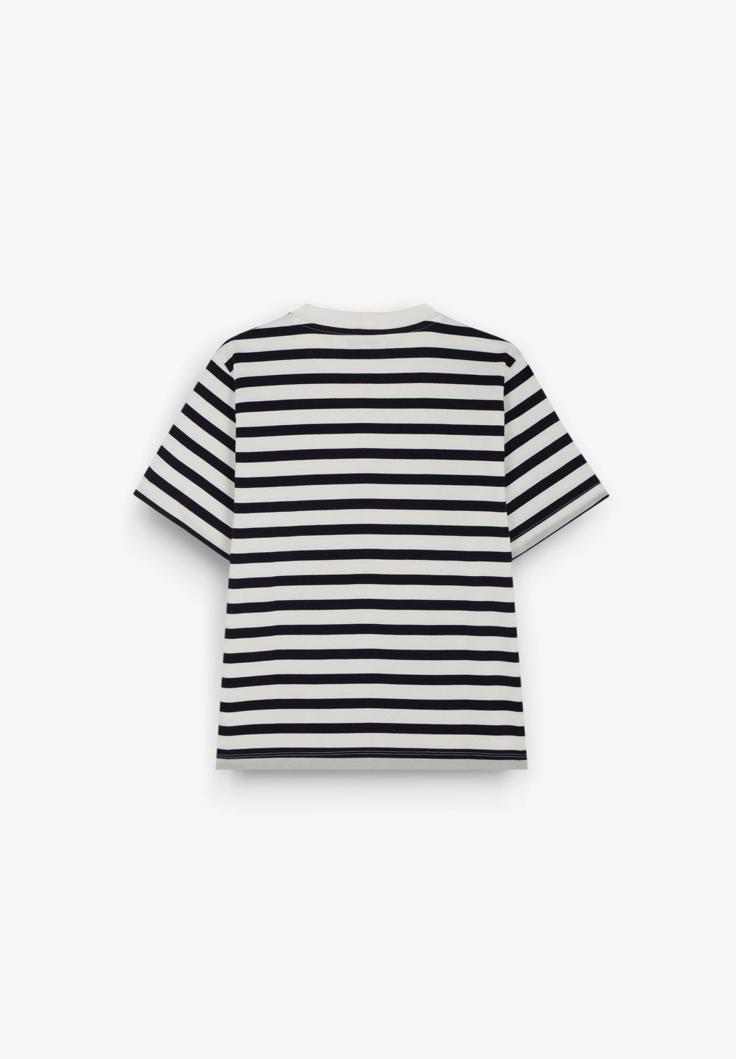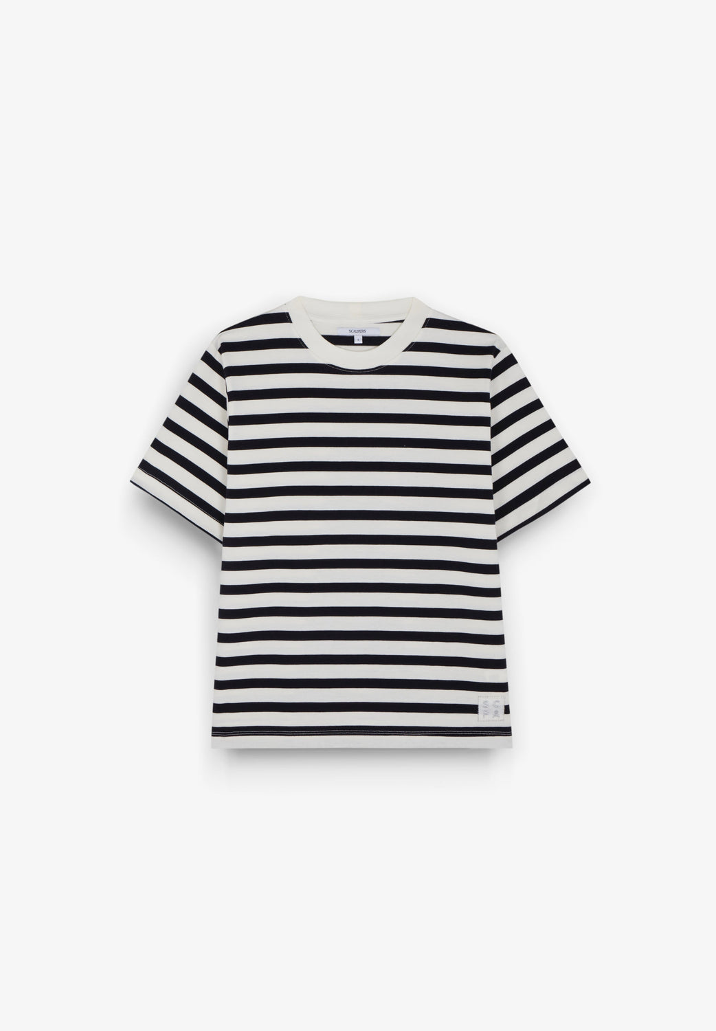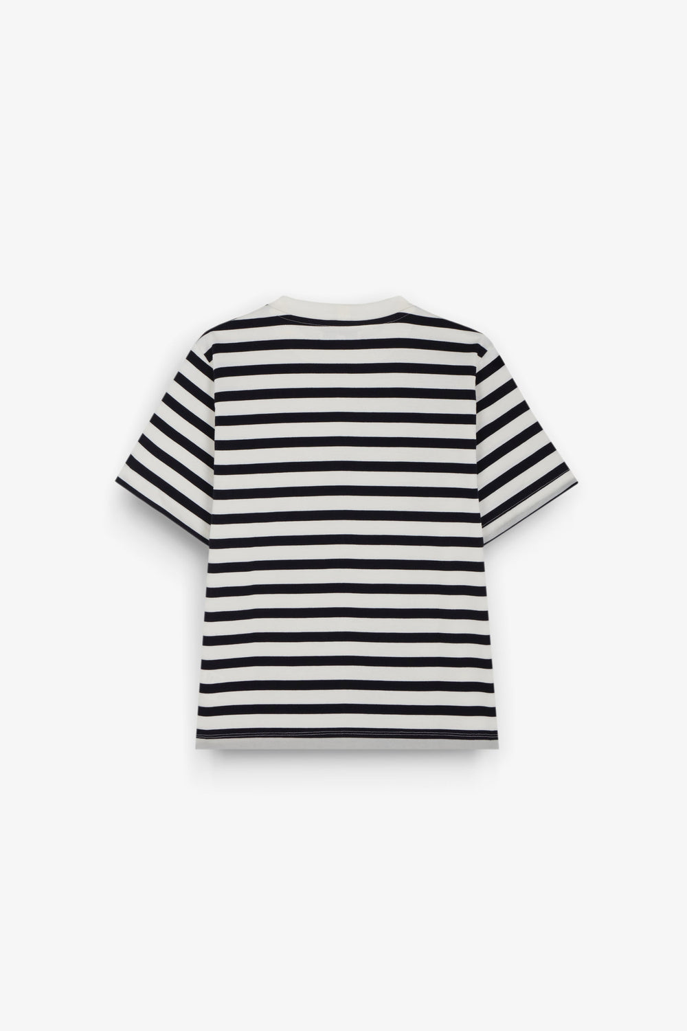 Premium striped T-shirt made of 100% organic cotton. Regular fit, round neck and short sleeves. Label on the hem.