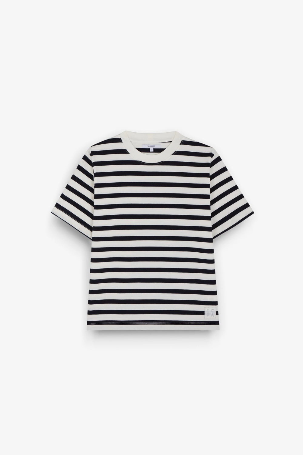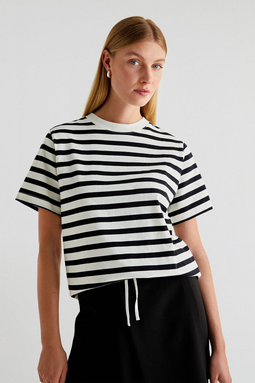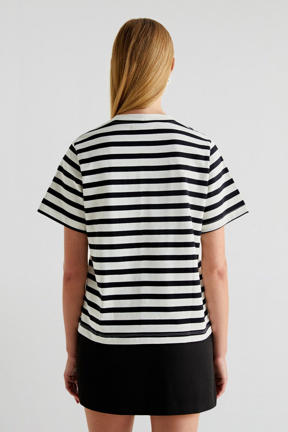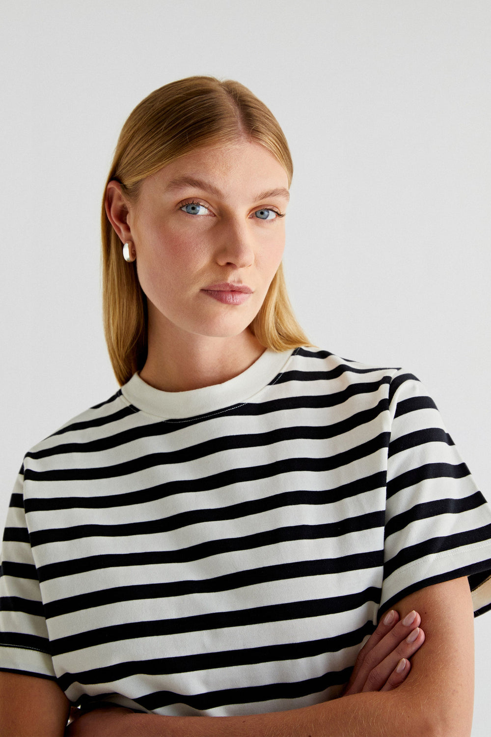 Premium striped T-shirt made of 100% organic cotton. Regular fit, round neck and short sleeves. Label on the hem.