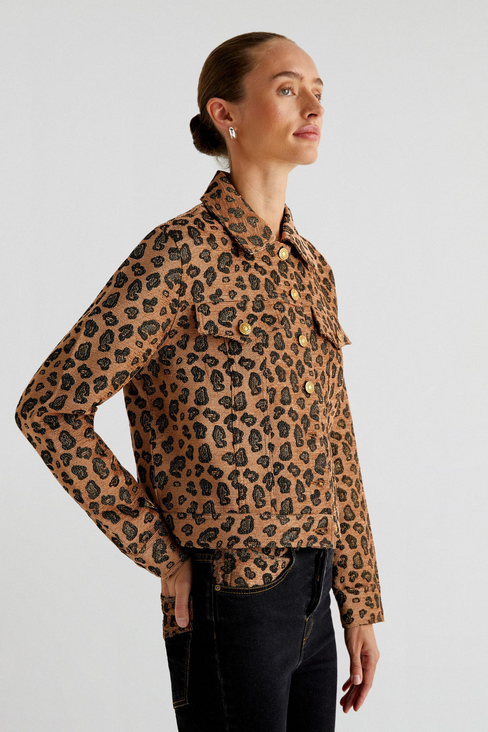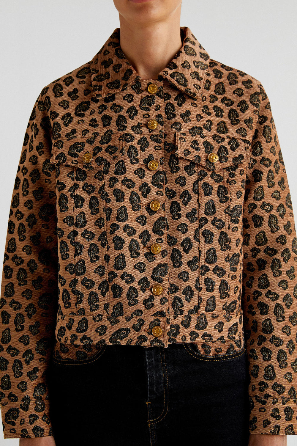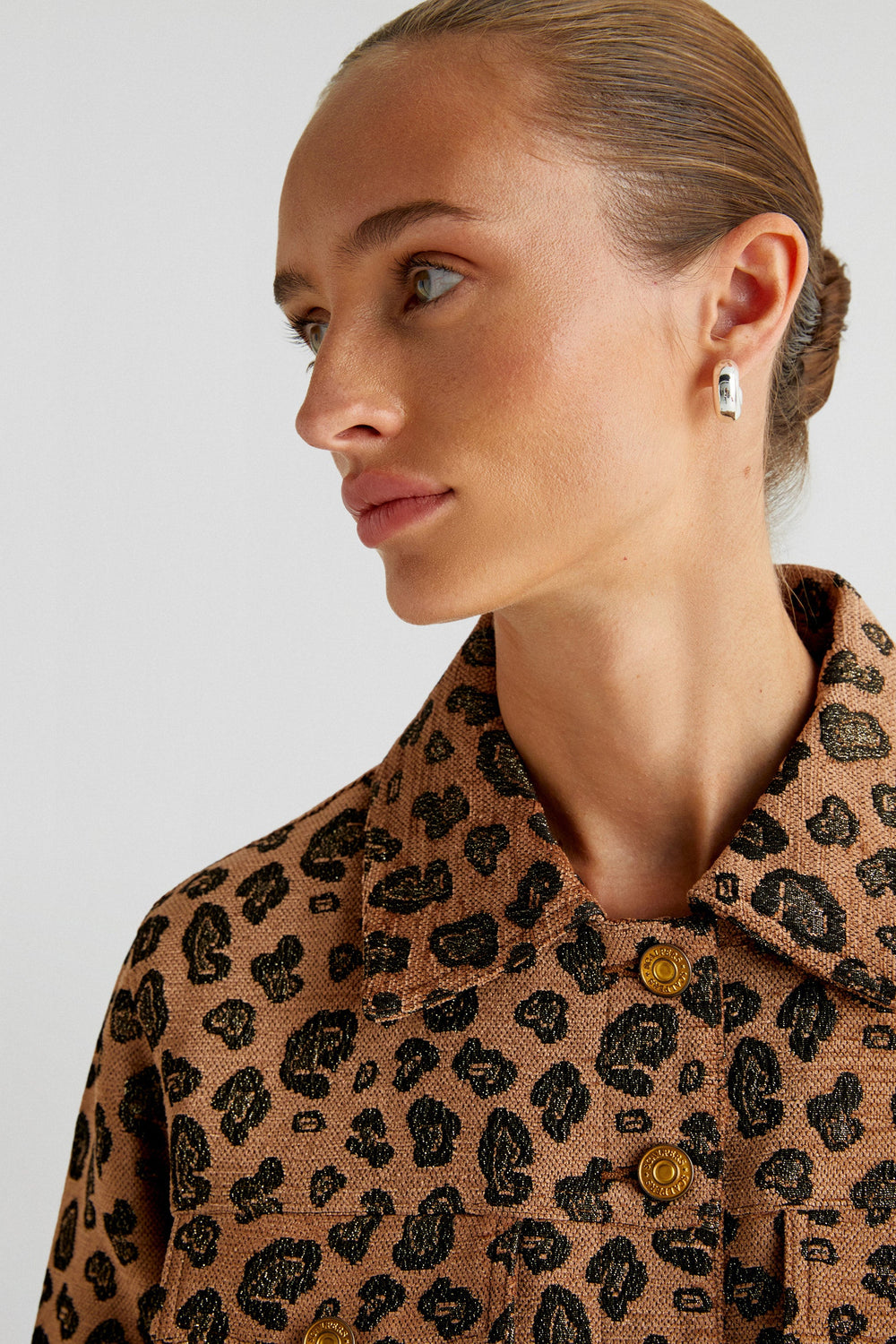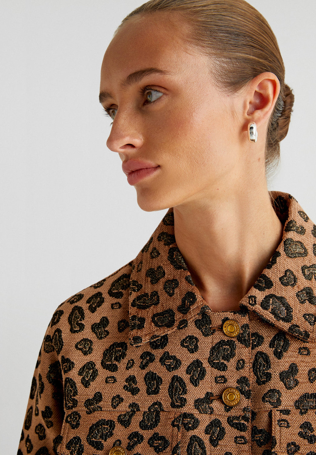 Animal print jacket. Regular fit, classic collar and button fastening. Long sleeves with buttoned cuffs and pockets with placket and button.