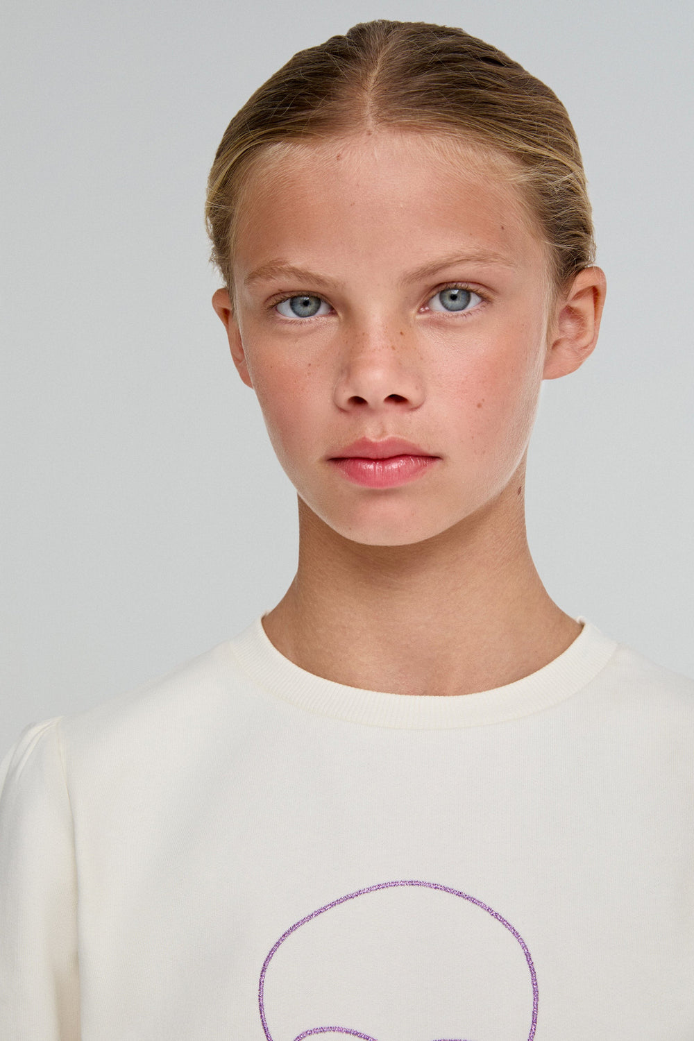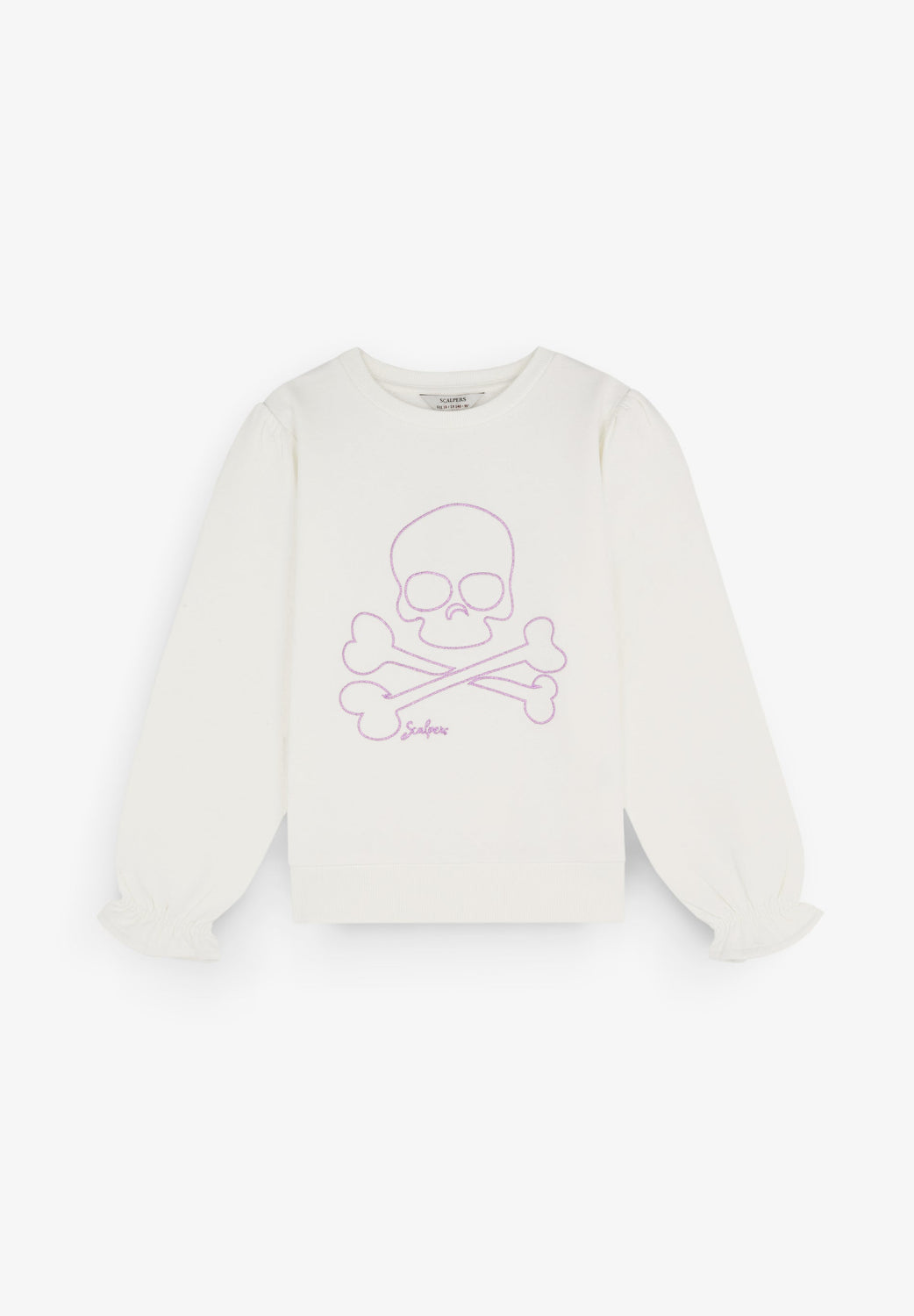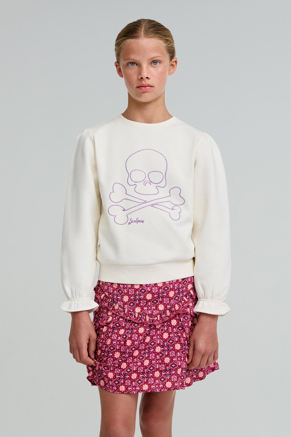 Sweatshirt with a skull print on the front. Made of 100% BCI cotton. Regular fit. Ribbed round neck. Long puff sleeves with gathered trim.
