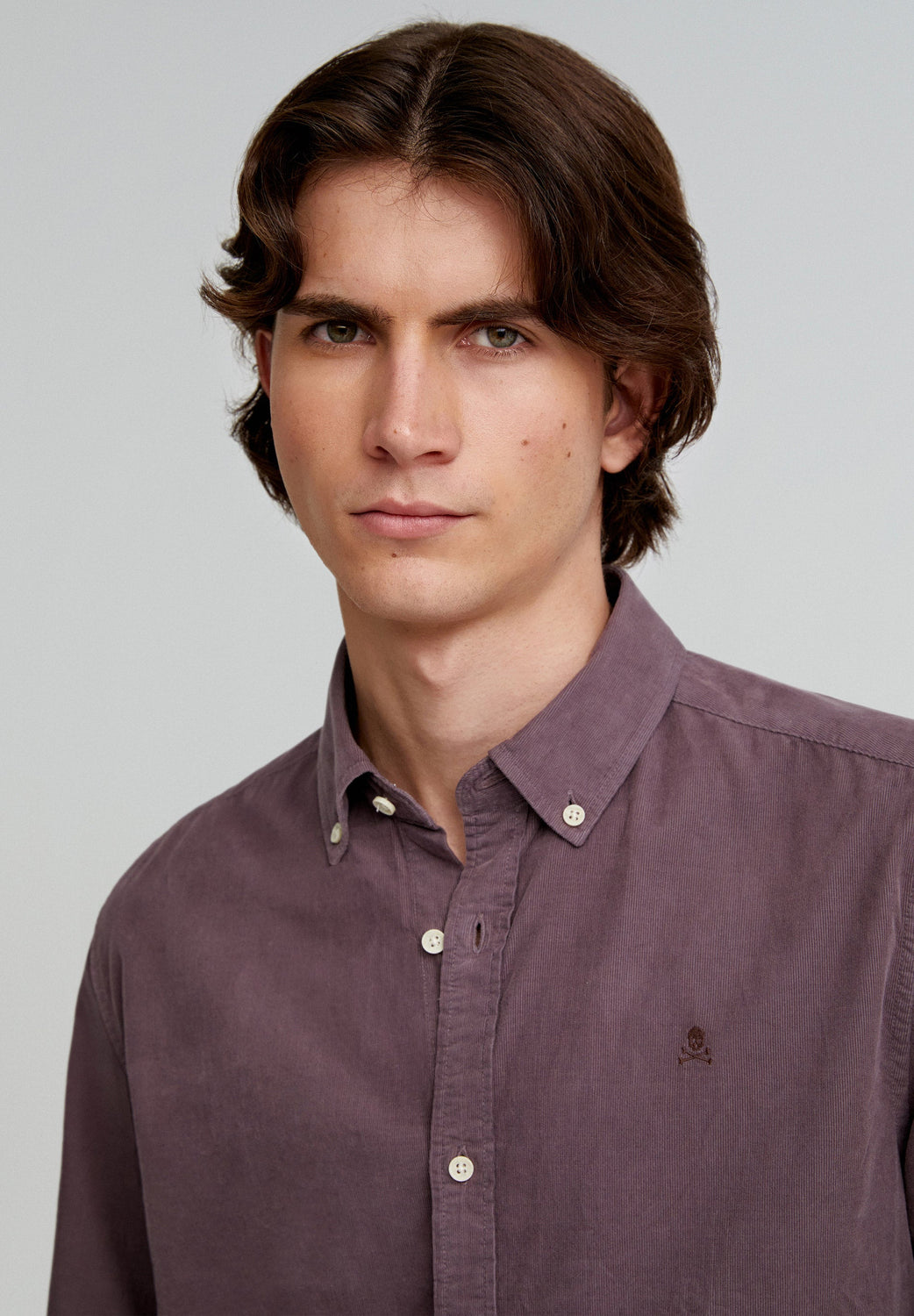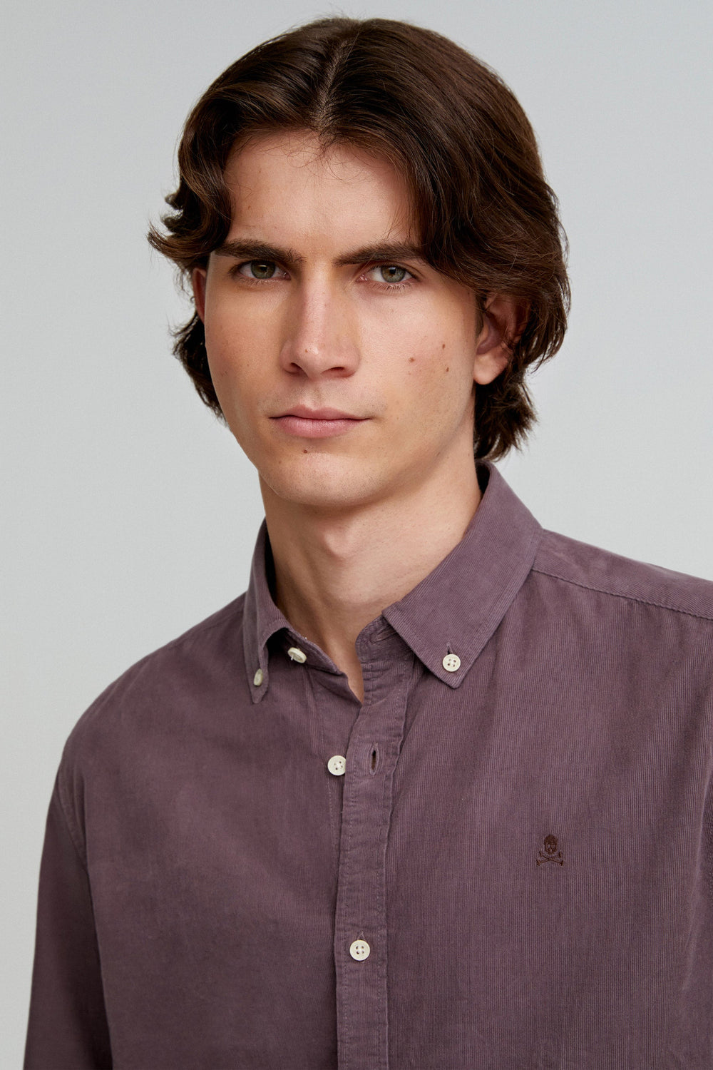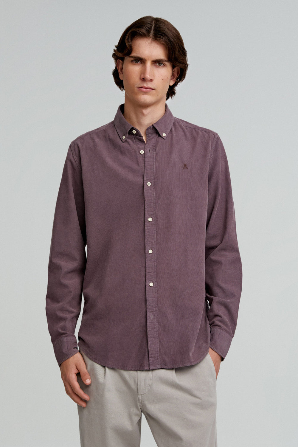 Corduroy shirt made of 100% BCI cotton. Regular fit, collar with buttons and button fastening. Long sleeves with buttoned cuffs and matching embroidered skull.