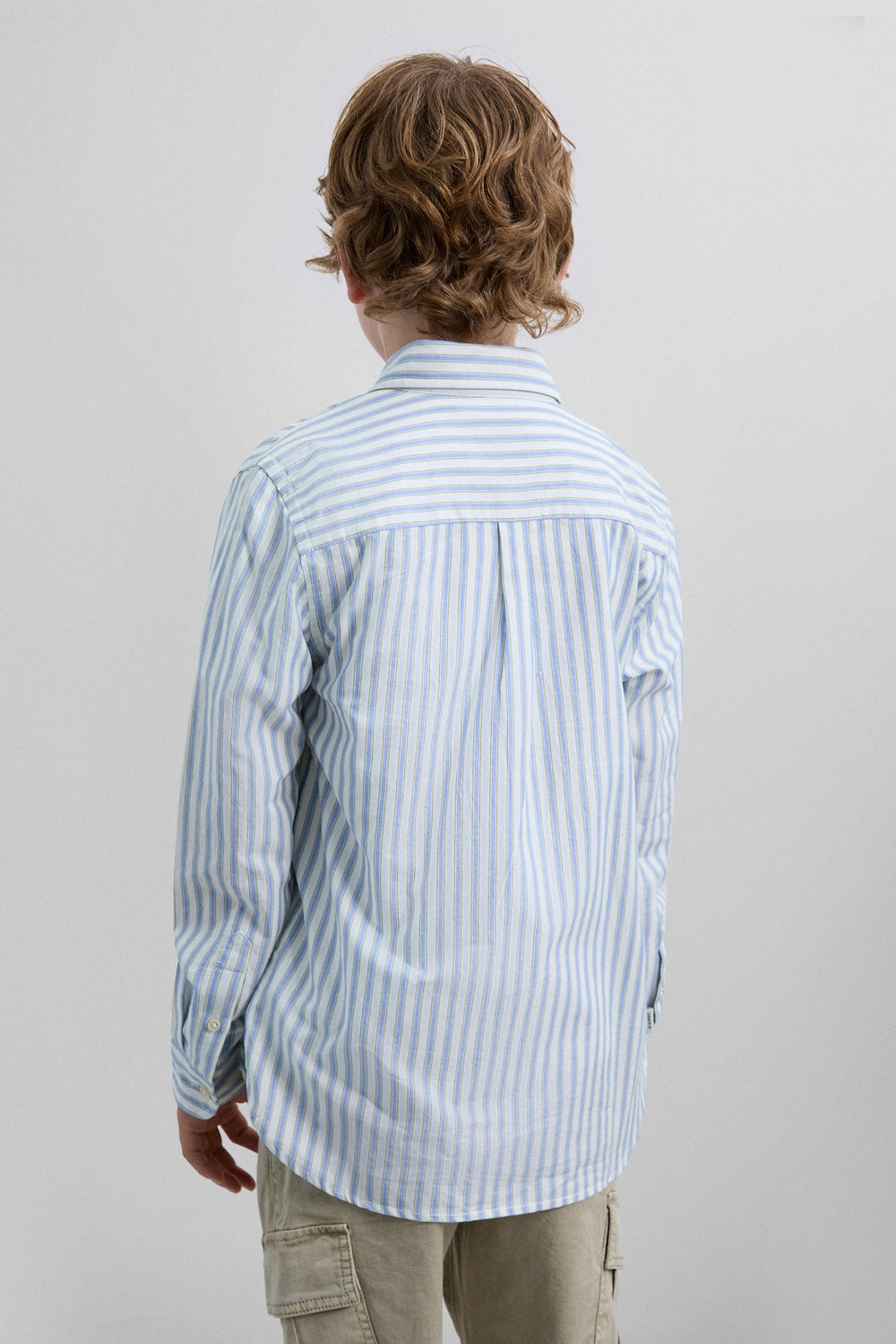 Oxford shirt made of 100% BCI cotton. Regular fit. Stripe print. Contrast embroidered skull detail on the chest.