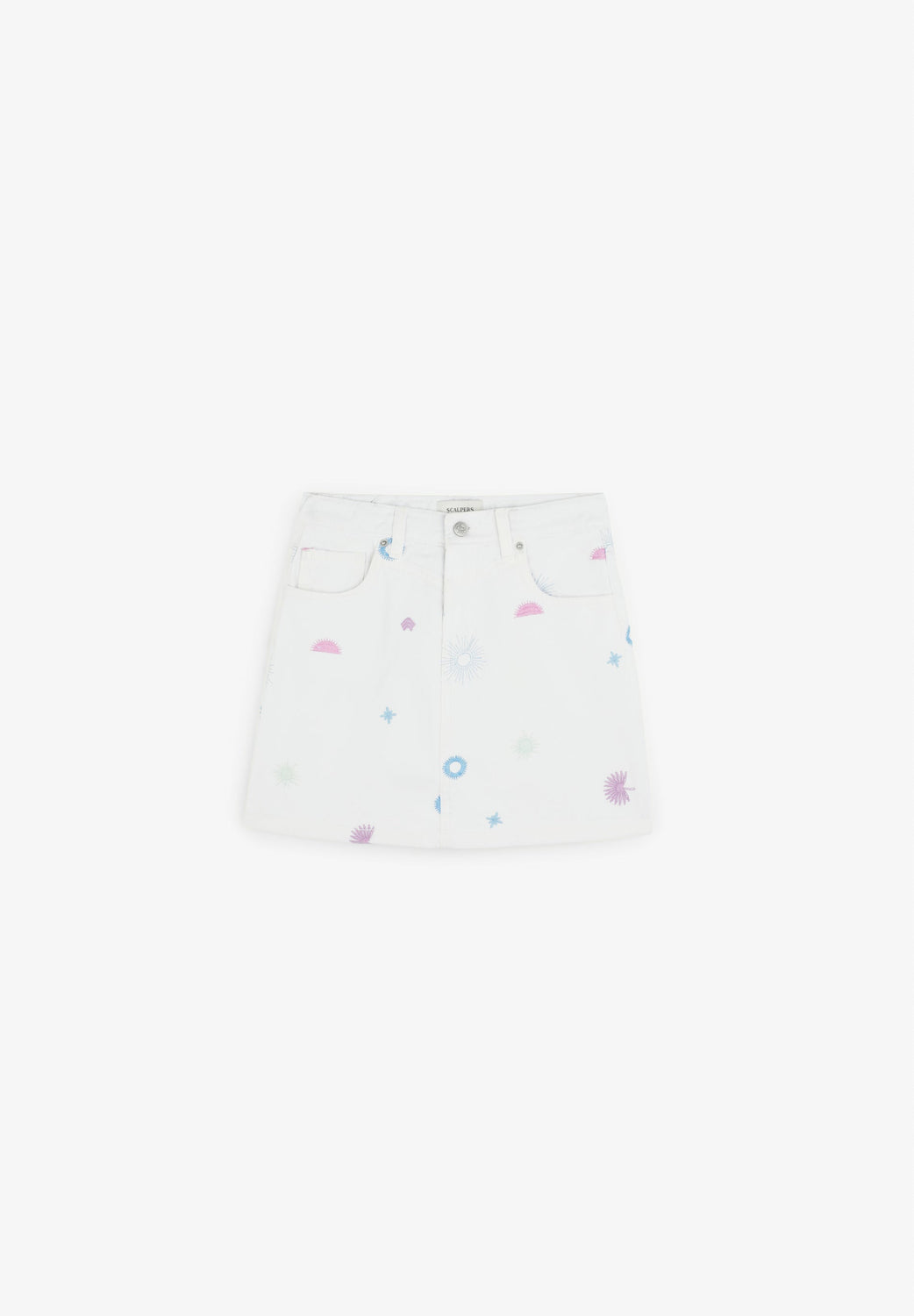 Skirt made of 100% organic BCI cotton. Zip and button fastening. Front pockets and back patch pockets. Contrast embroidered details. Logo on waistband.