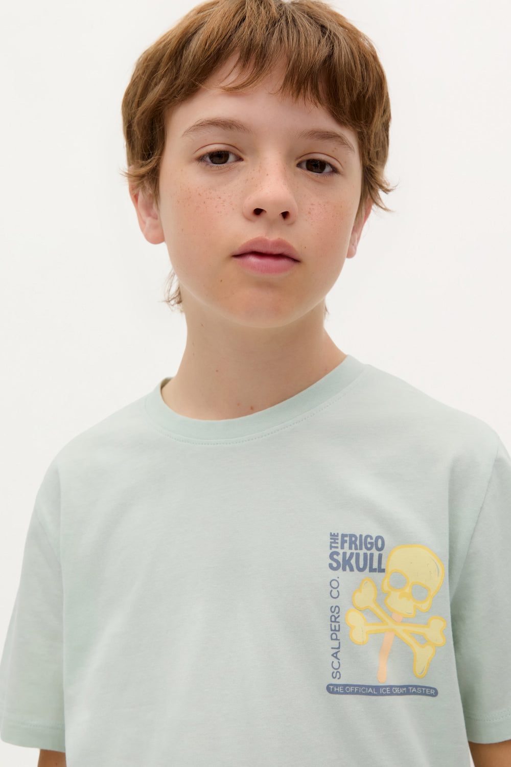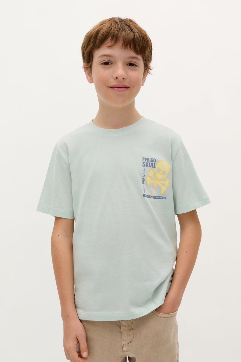 T-shirt made of 100% BCI cotton. Regular fit, short sleeves and round neck. Contrast print with logo on front. Embroidered label on lower right side