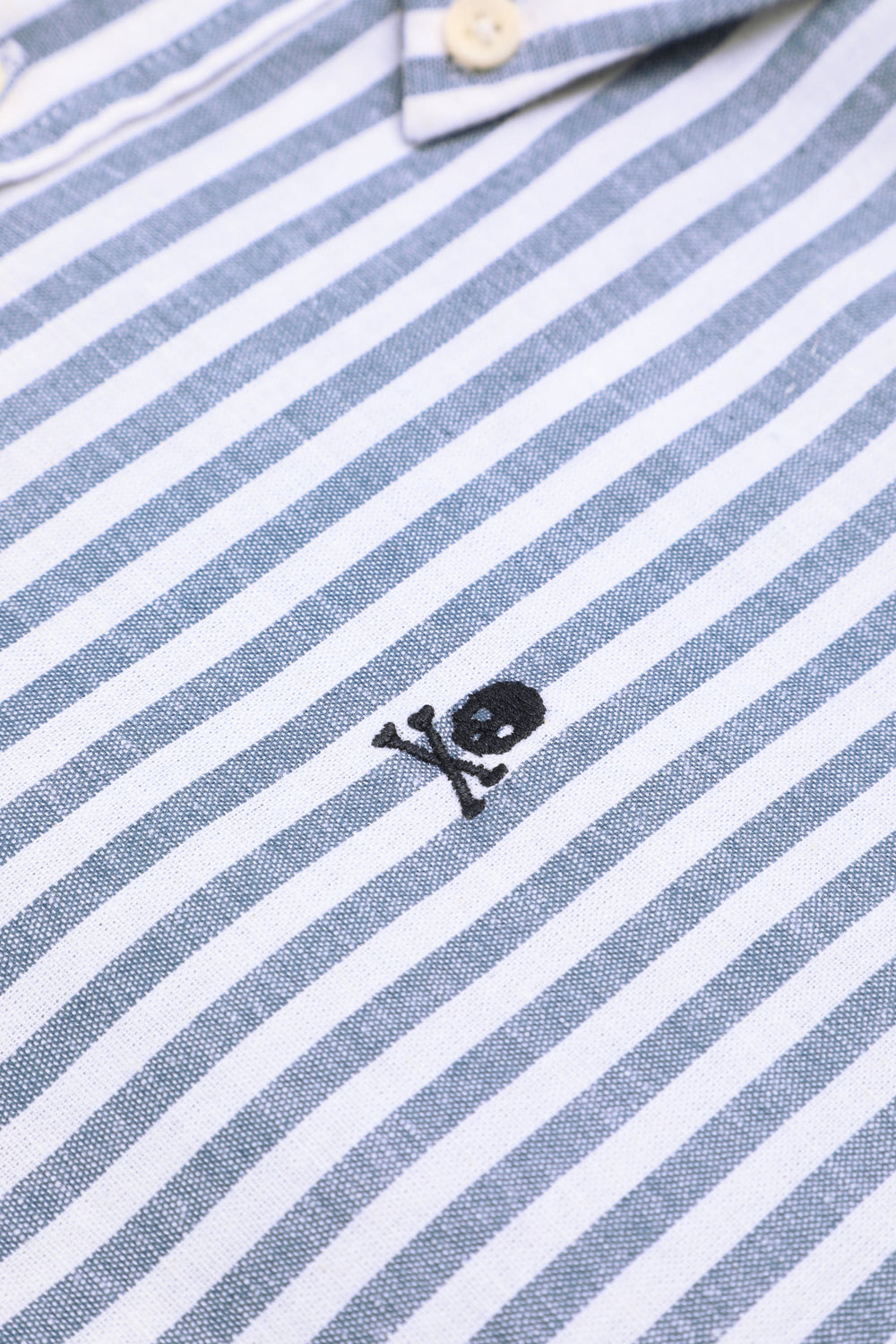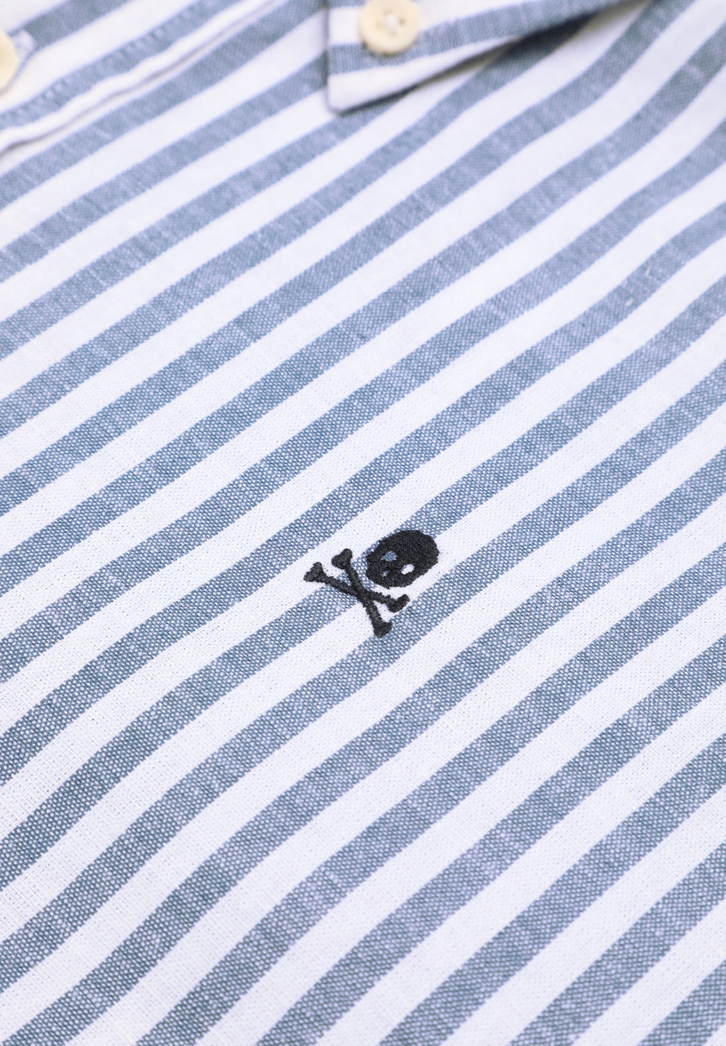 Striped shirt with contrast embroidered skull detail on the chest. Made of a cotton and linen blend. Regular fit. Buttoned collar. Front button fastening. Long sleeves with buttoned cuffs.