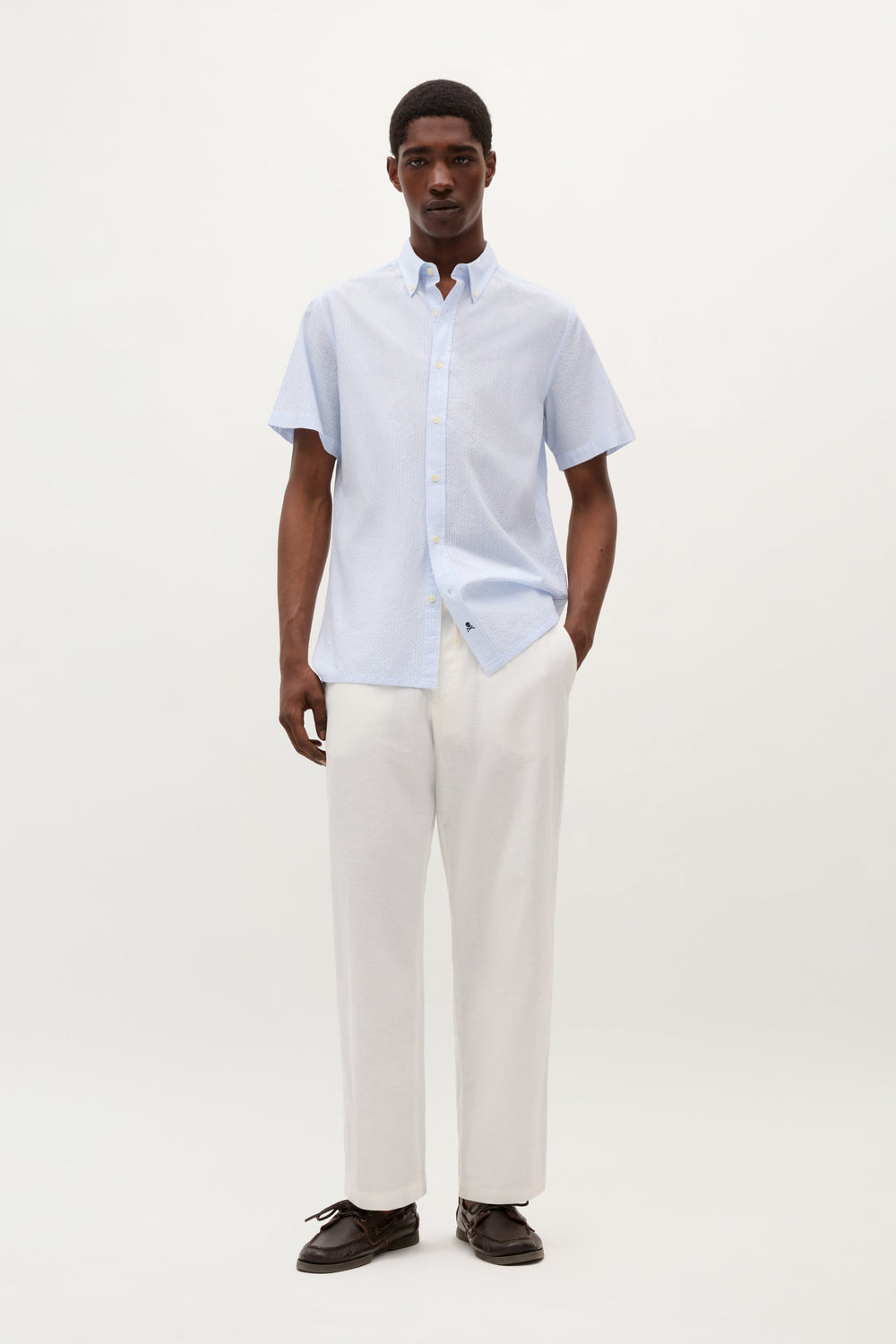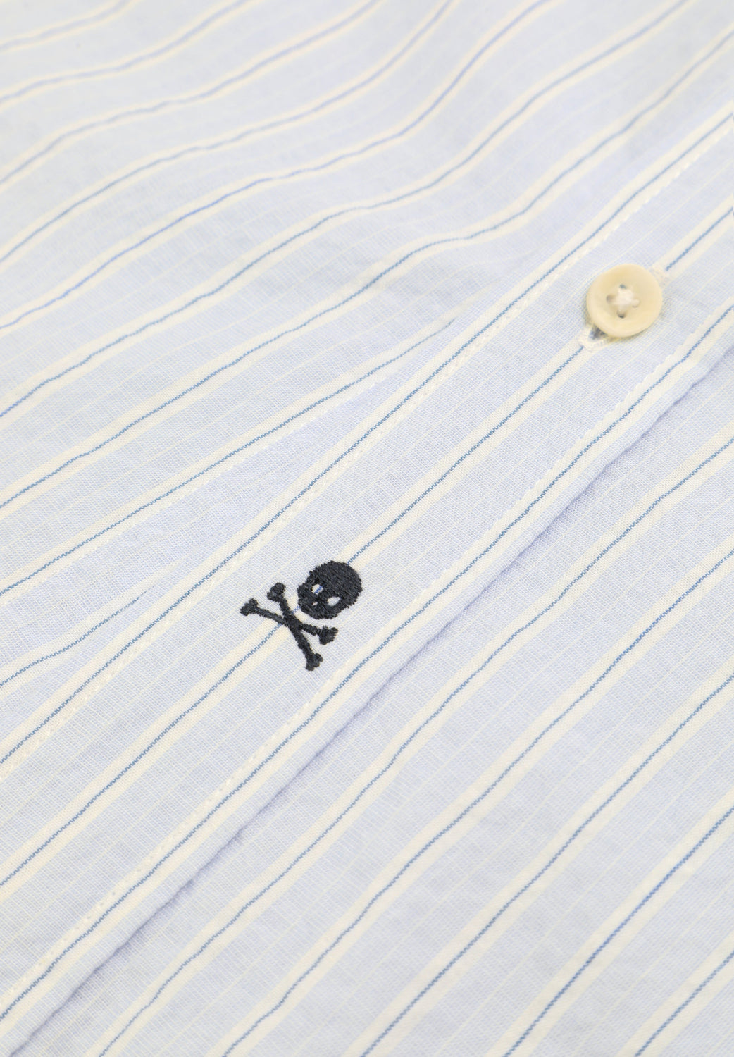Shirt made of 100% cotton with seersucker texture. Regular fit. Buttoned collar. Button fastening. Short sleeves. Contrast embroidered skull detail on the placket.