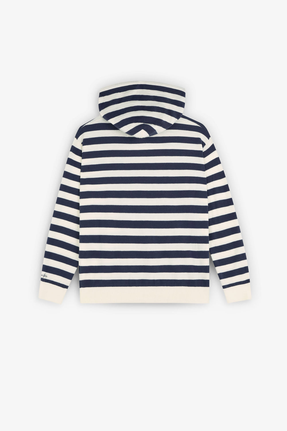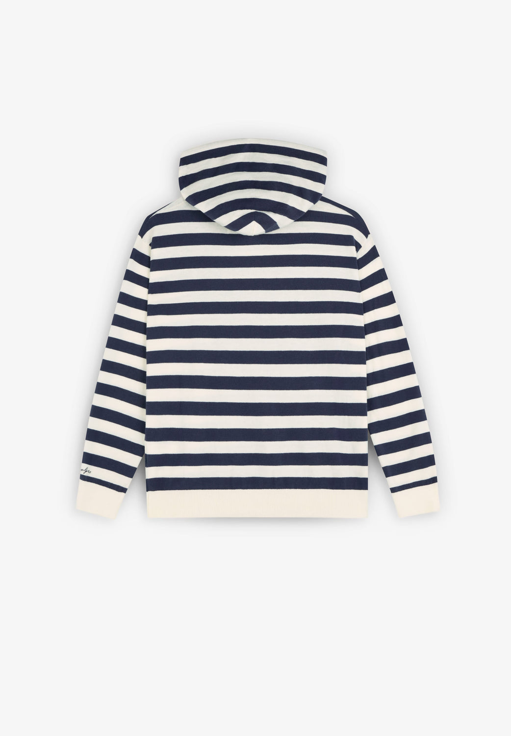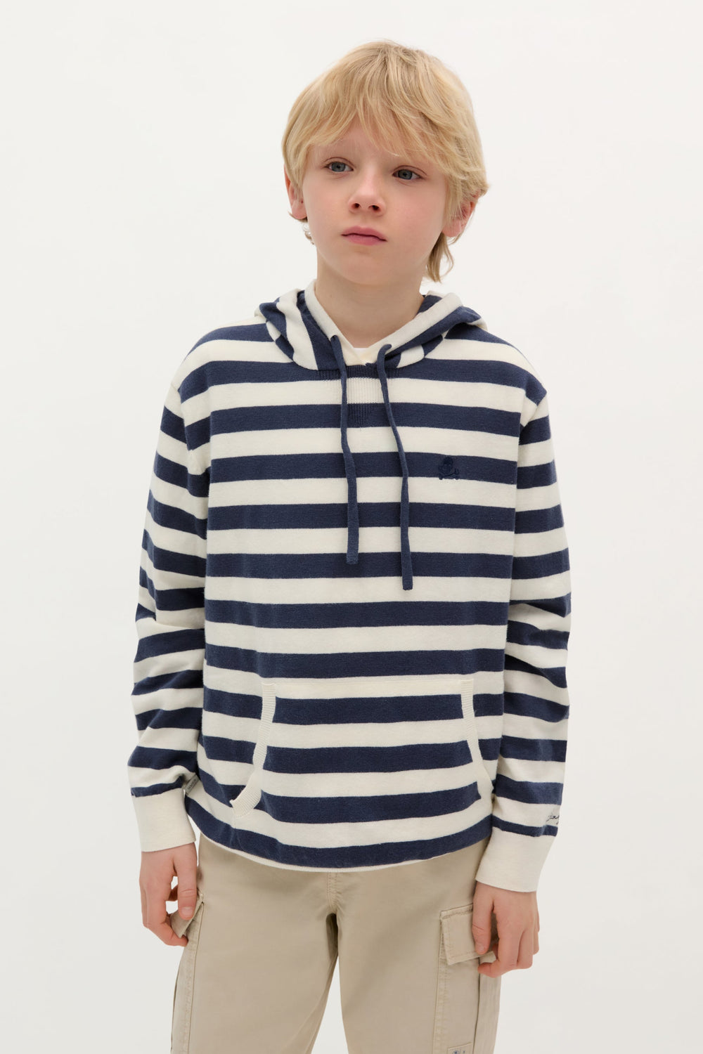 Striped sweater with hood and contrast details. Made of 100% BCI cotton. Regular fit. Collar with adjustable hood. Long sleeves with contrast cuffs. Pouch pocket. Contrast embroidered skull detail.
