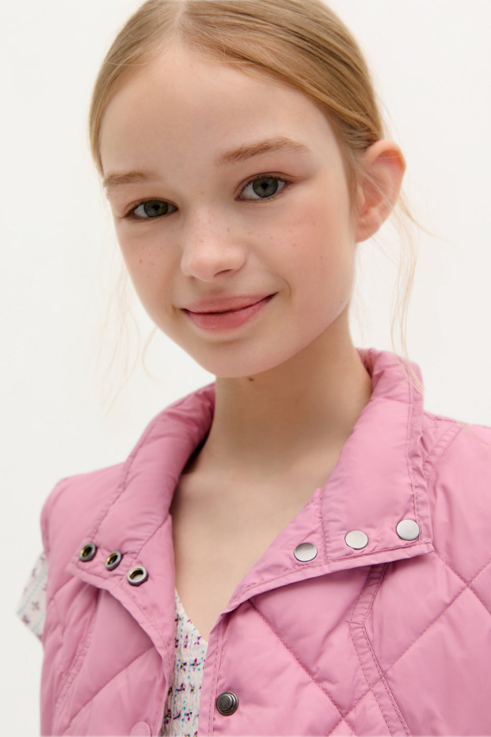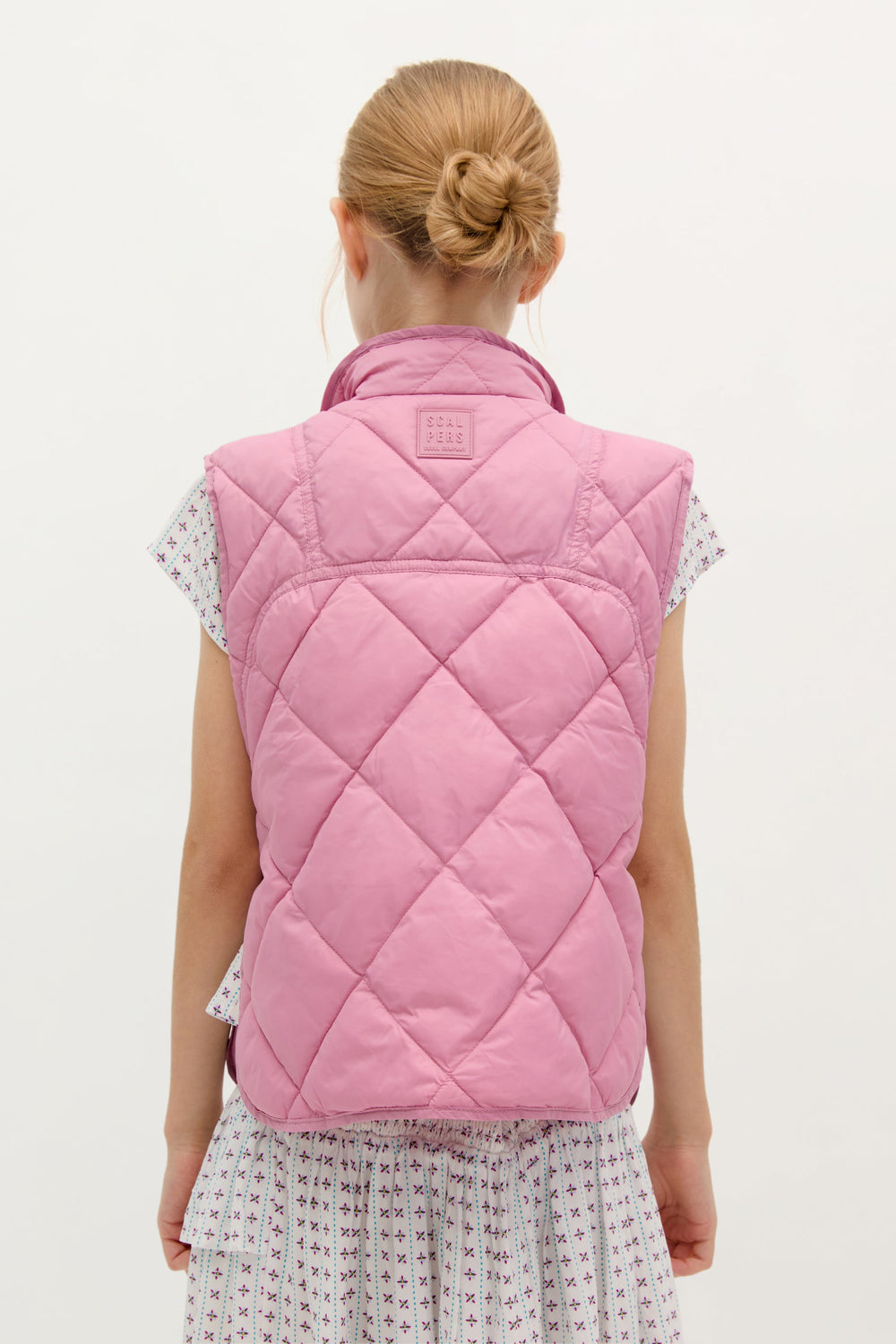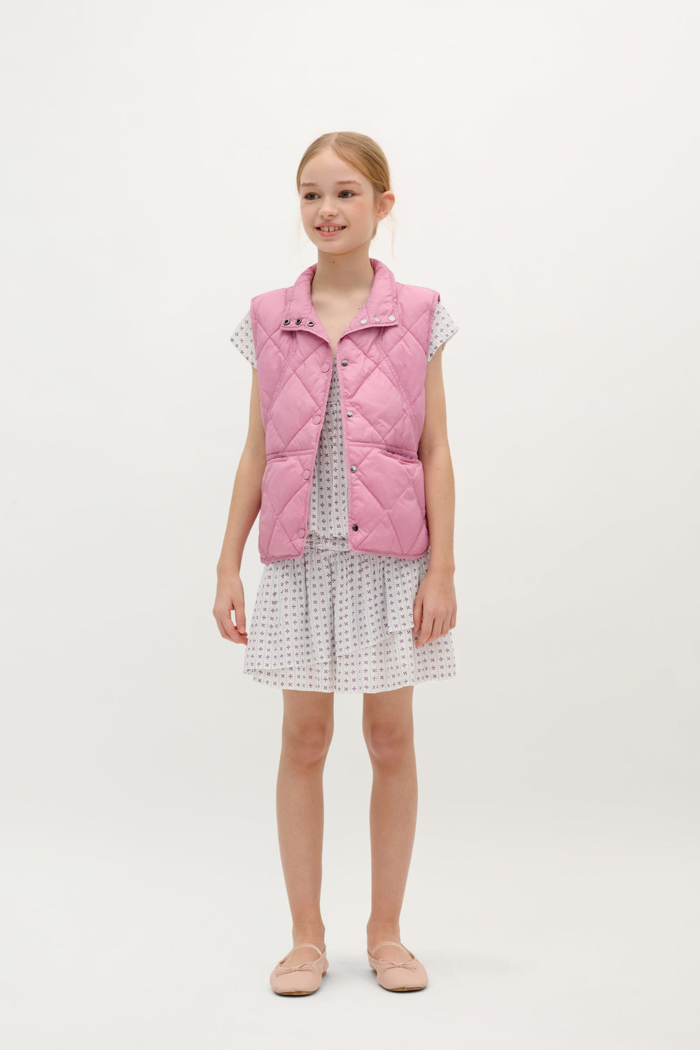 Puffer vest made of polyester. Regular fit with button fastening. Side slits, front magnetised pockets. Rubber patch detail on the back.