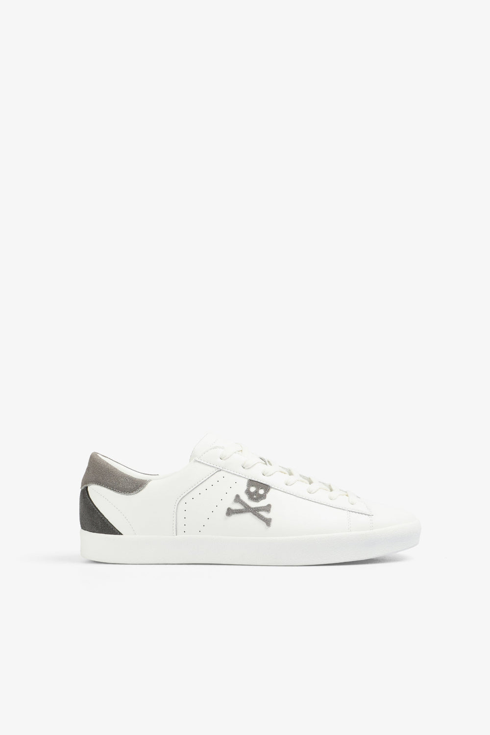 Low top leather and split suede sneakers. Matching lace-up fastening, rubber sole and skull detail on the side. Contrast back detail.
