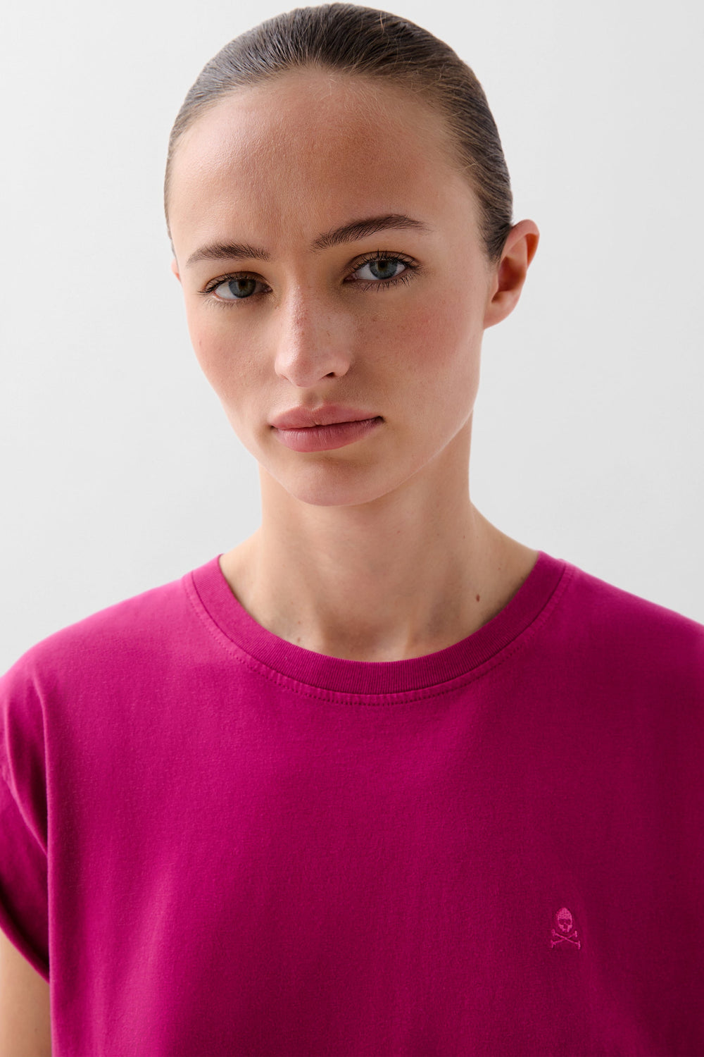T-shirt made of 100% BCI cotton. Regular fit, round neck and short sleeves. Matching embroidered skull detail.
