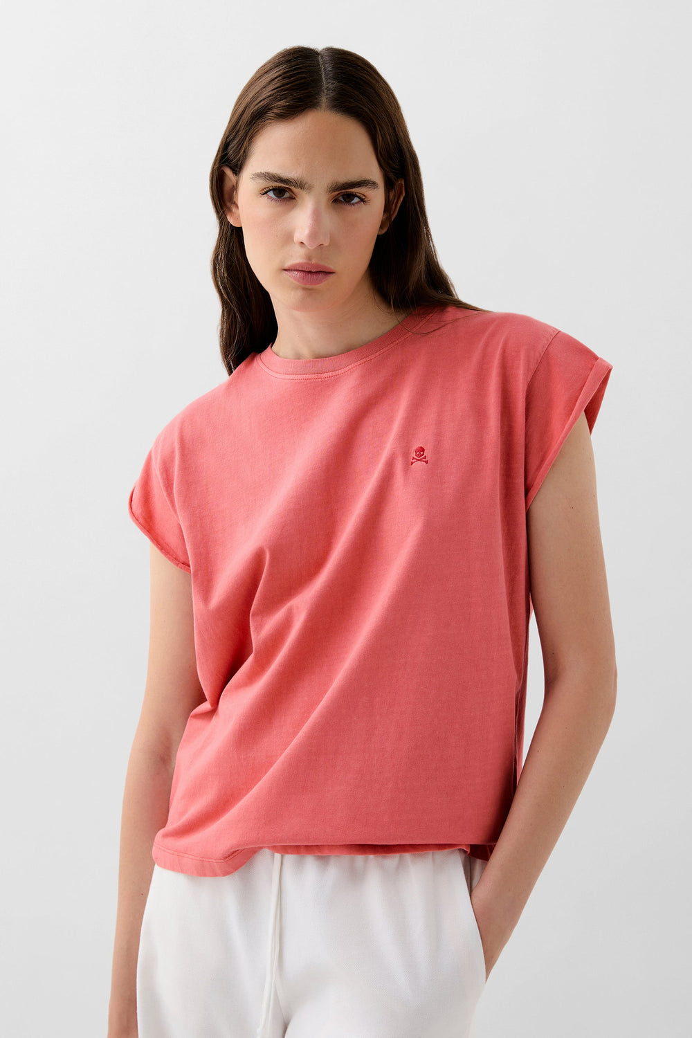 T-shirt made of 100% BCI cotton. Regular fit, round neck and short sleeves. Matching embroidered skull detail.