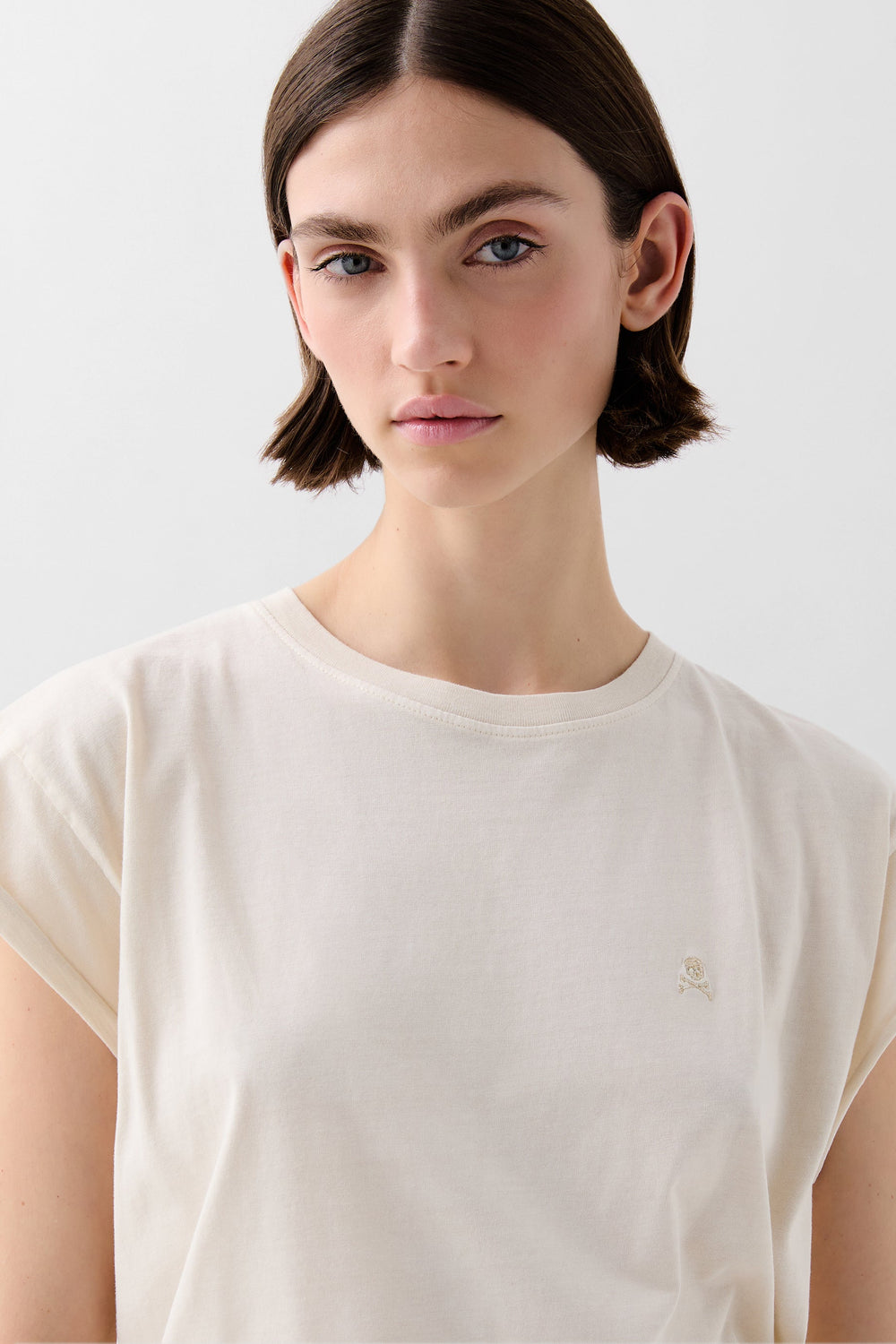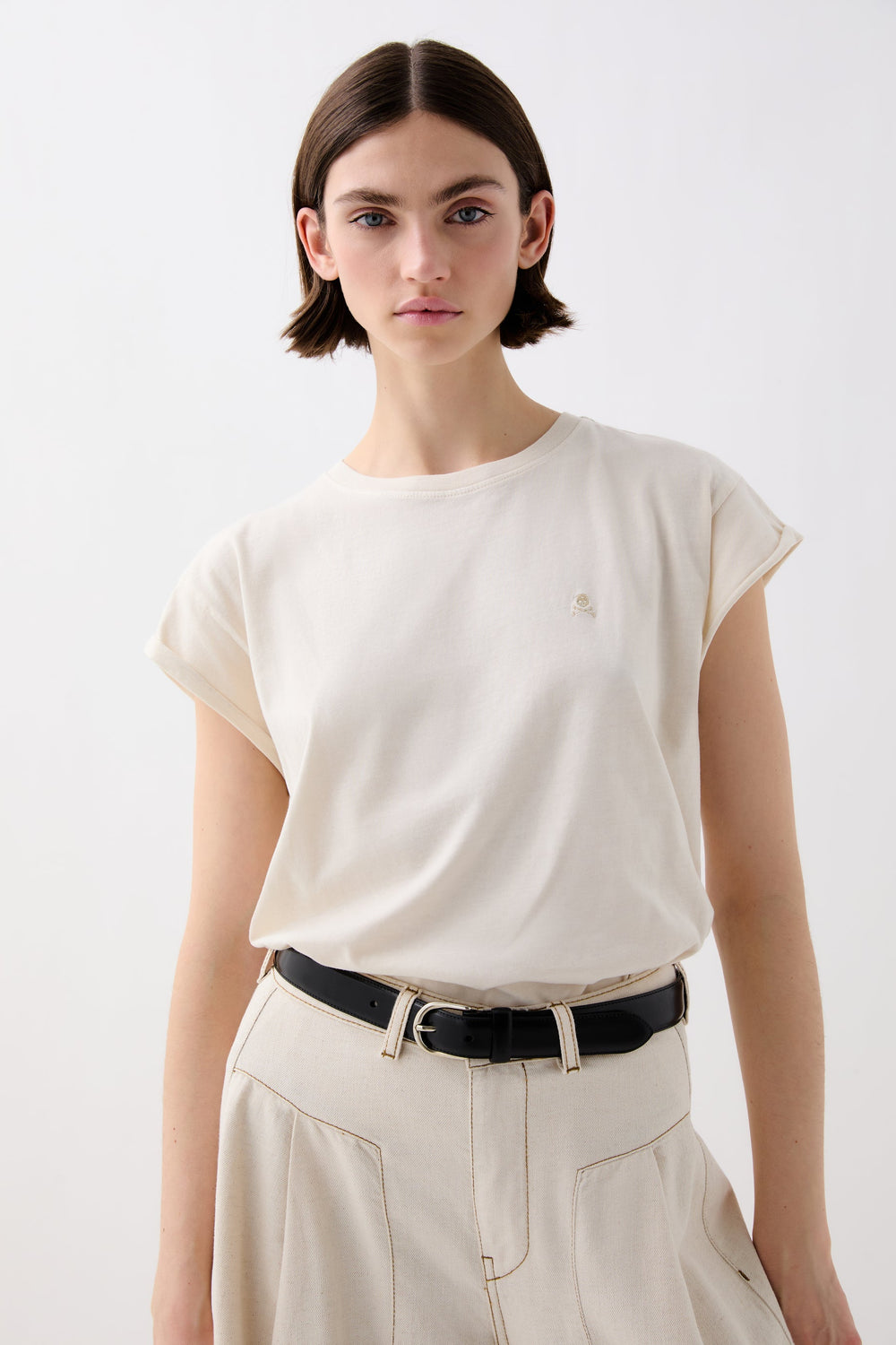 T-shirt made of 100% BCI cotton. Regular fit, round neck and short sleeves. Matching embroidered skull detail.