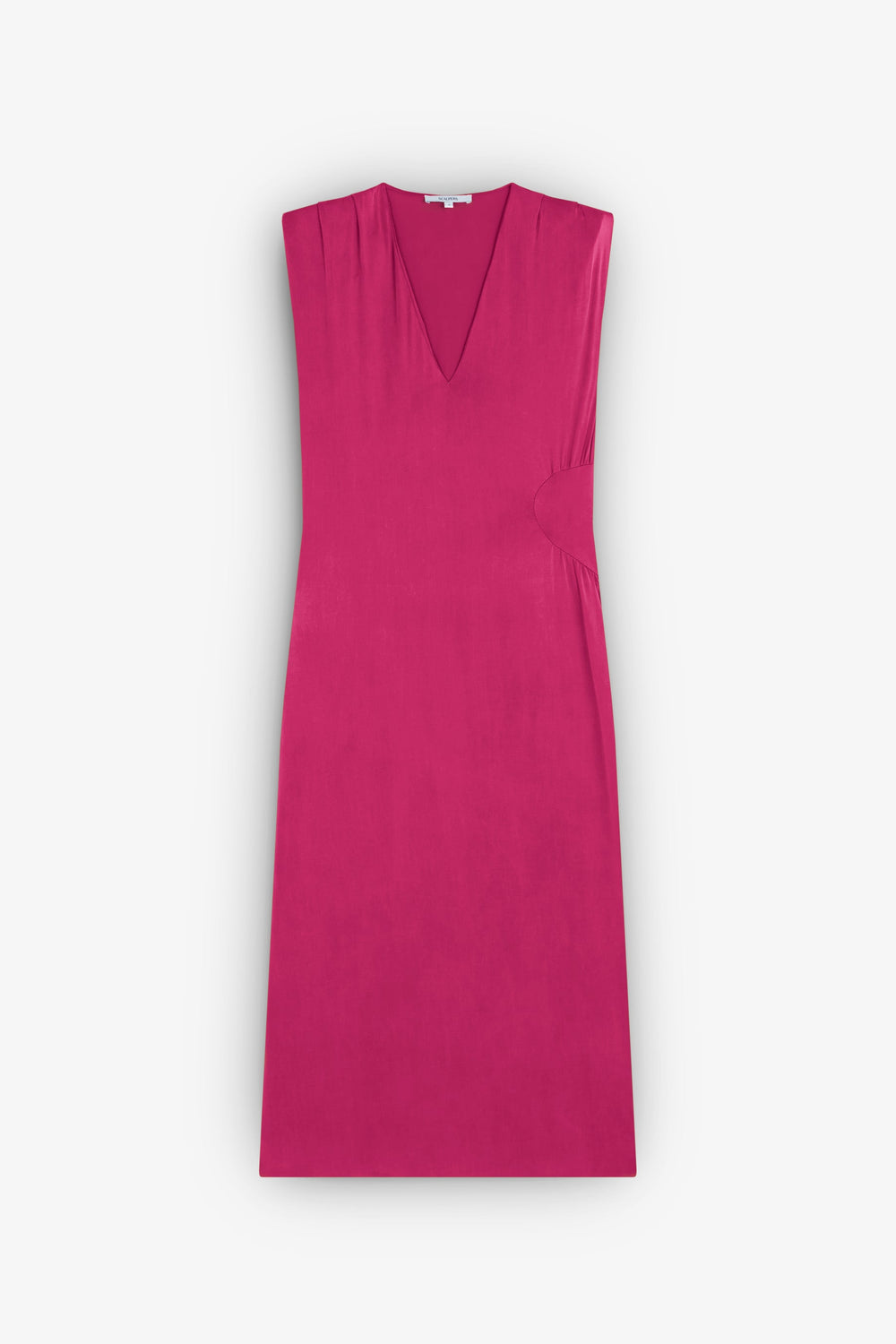 Dress made of slightly stretchy cupro fabric. Regular fit, V-neck and sleeveless with ruching and slight shoulder padding. Gathered detail on waistband.