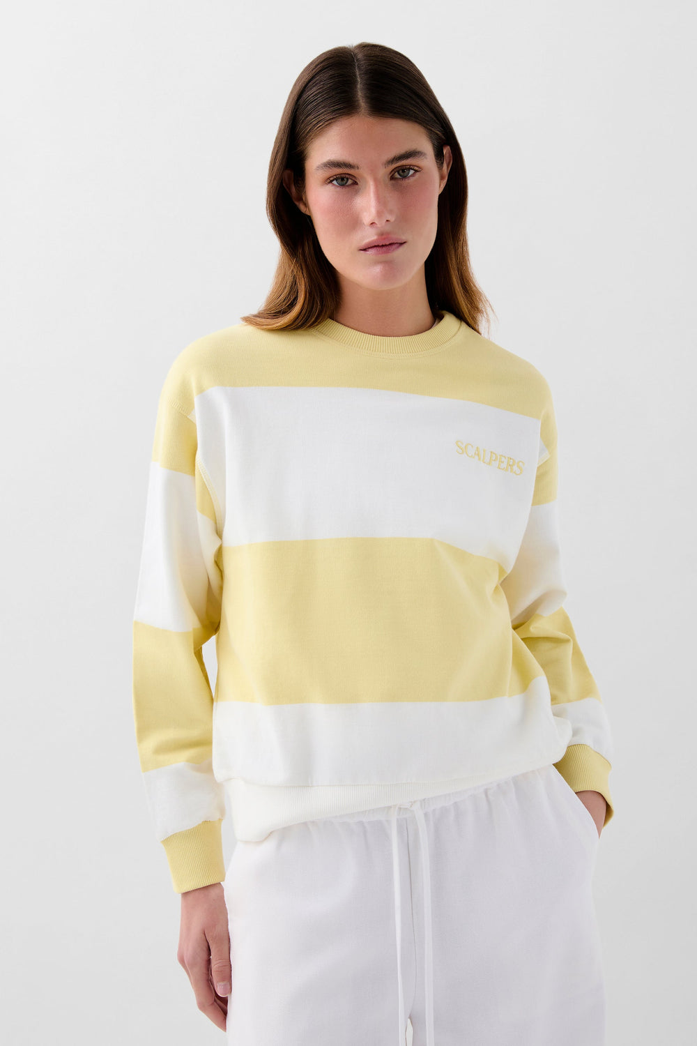 Striped sweatshirt made from 100% cotton. Regular fit, round neck and long sleeves. Embroidered logo on the chest.
