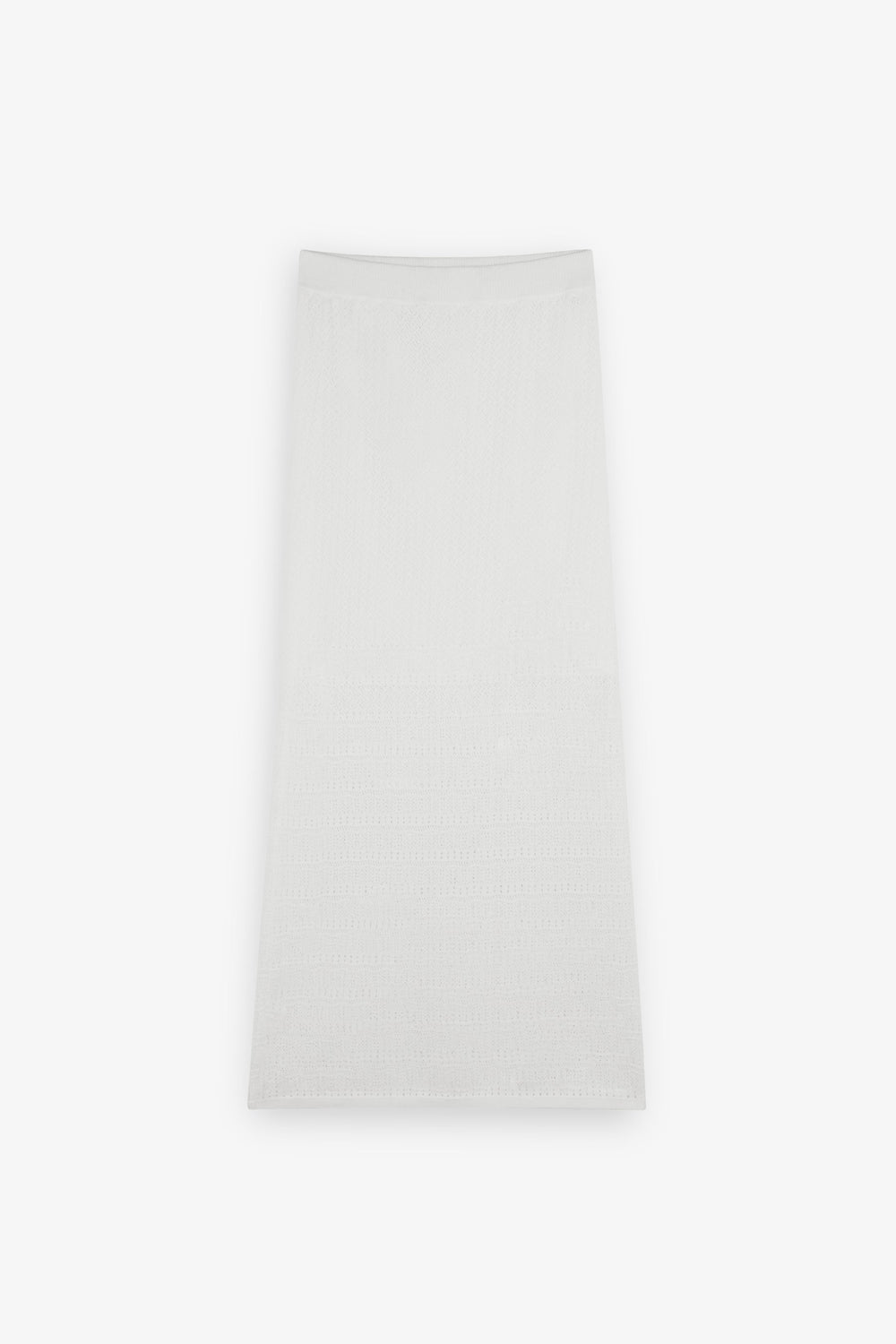 Pointelle knit skirt. Lined. Elasticated waistband.