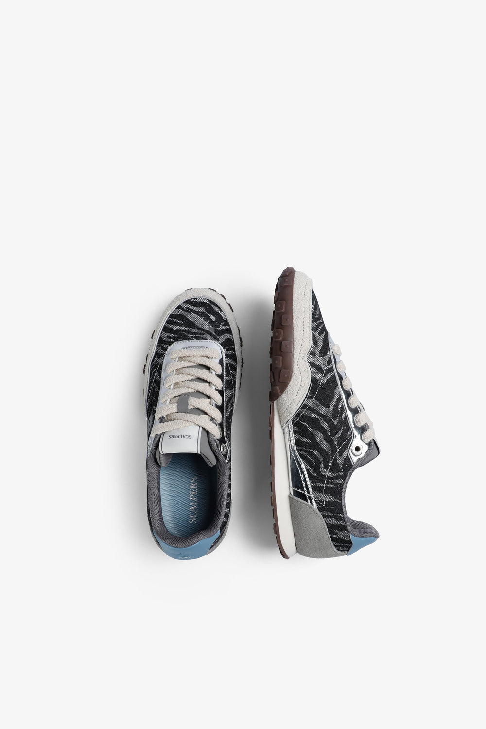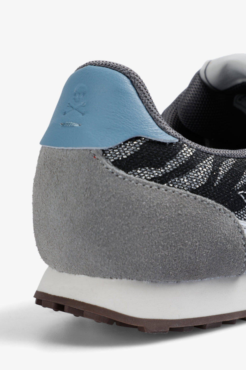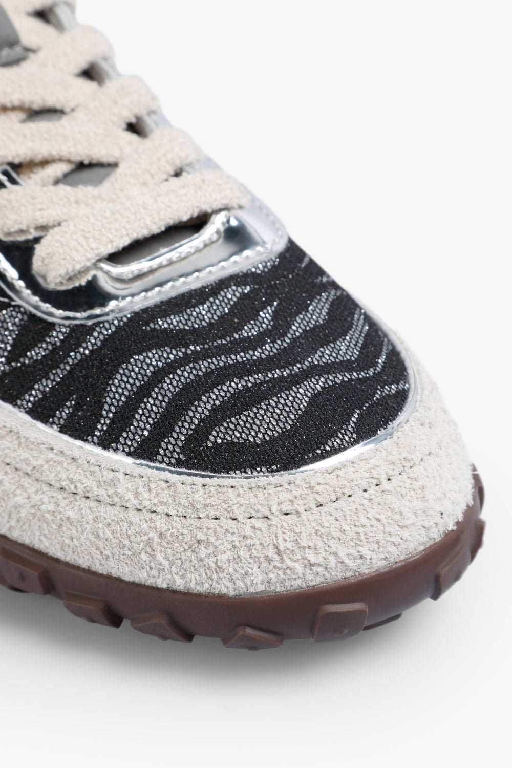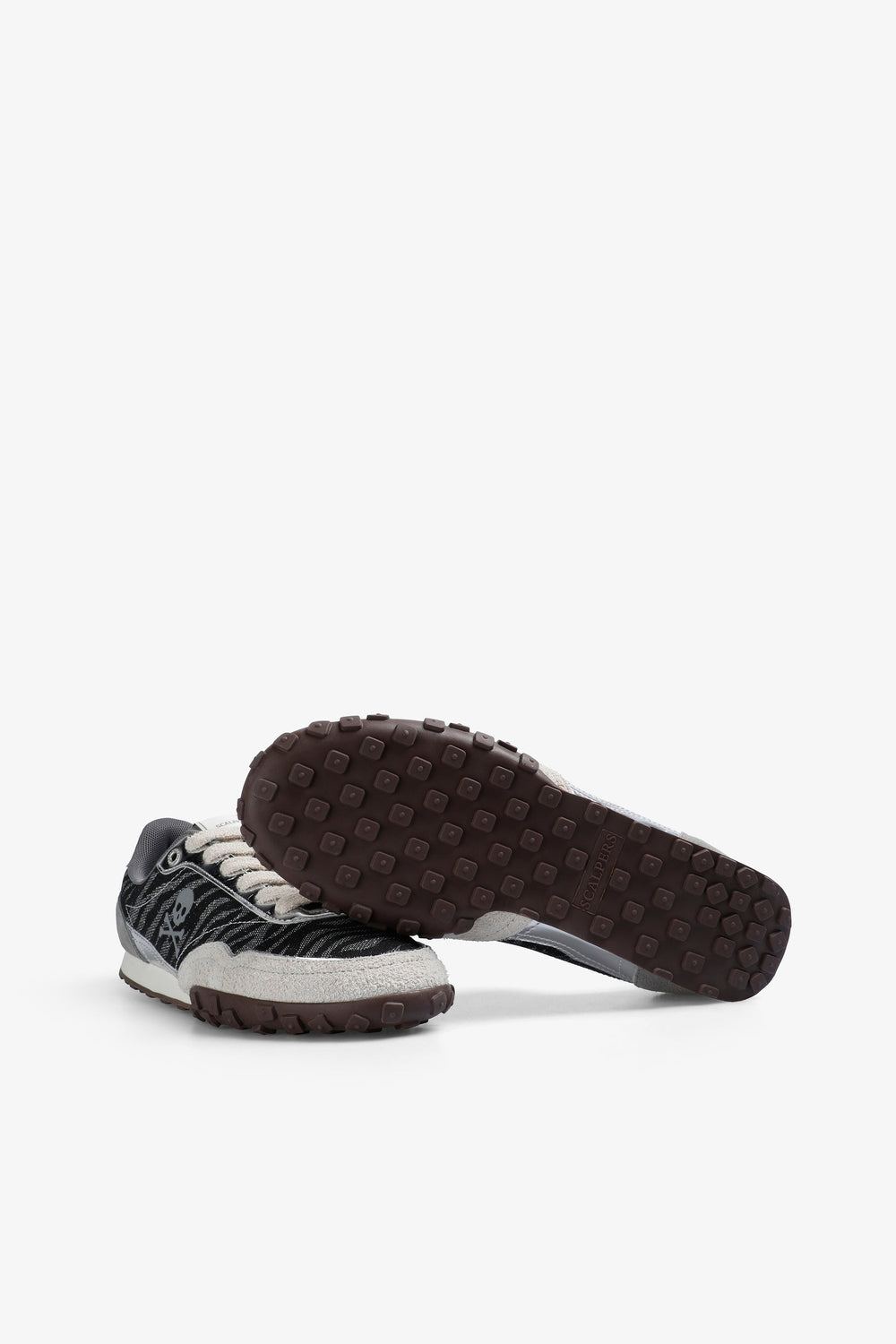 Sneakers with split leather trim. Rubber sole. Zebra print with glitter detail. Double stitching at the toe. Logo detail on the tongue. Skull logo on the side.