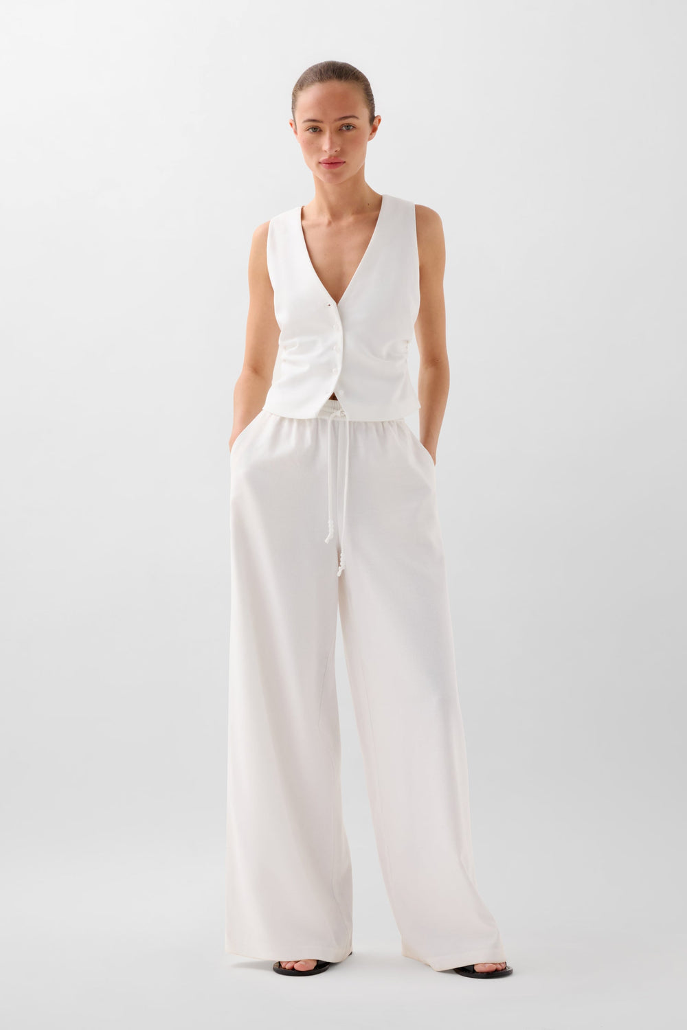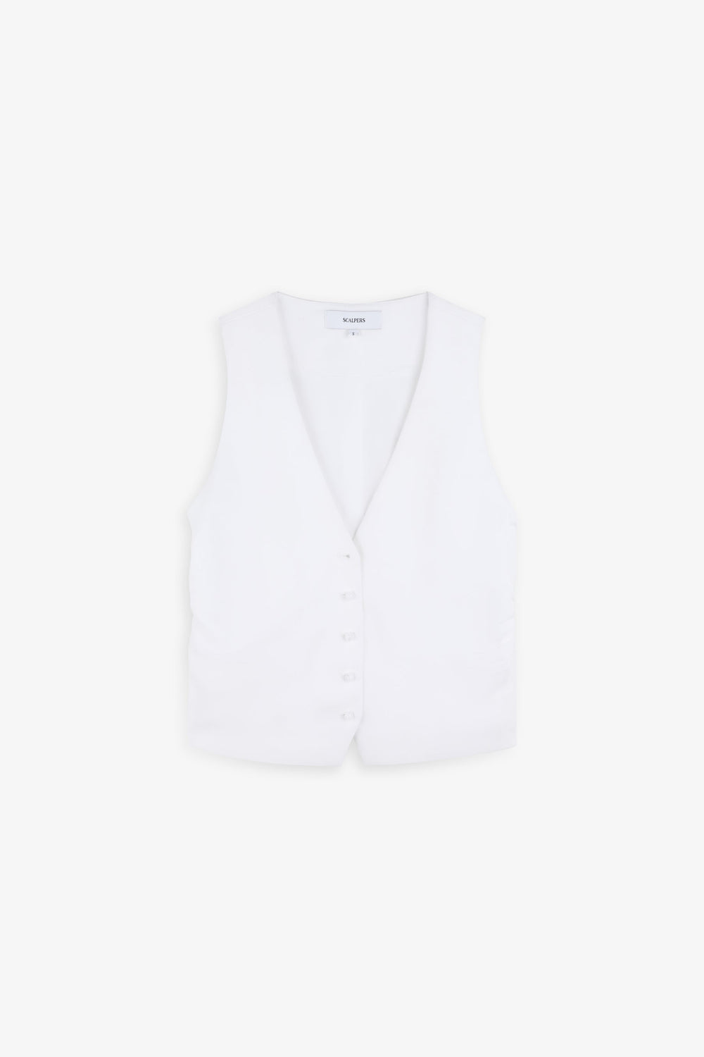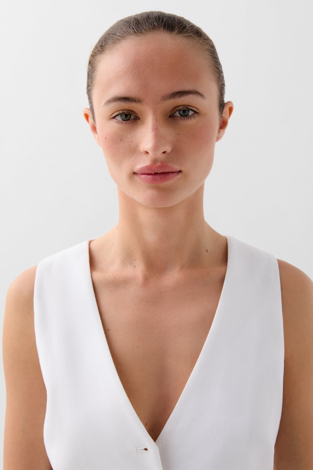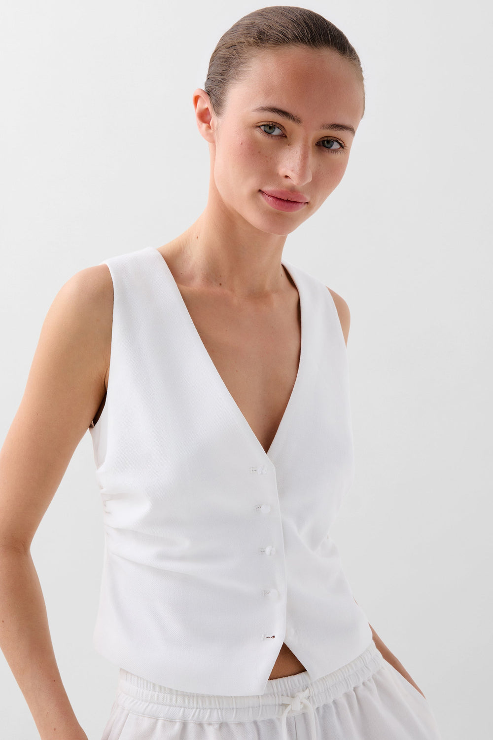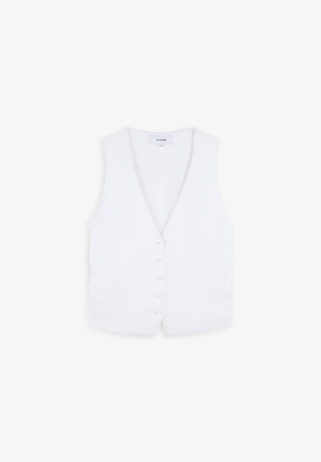 Waistcoat made of a linen blend. V-neck. Front button fastening. Cotton lining.