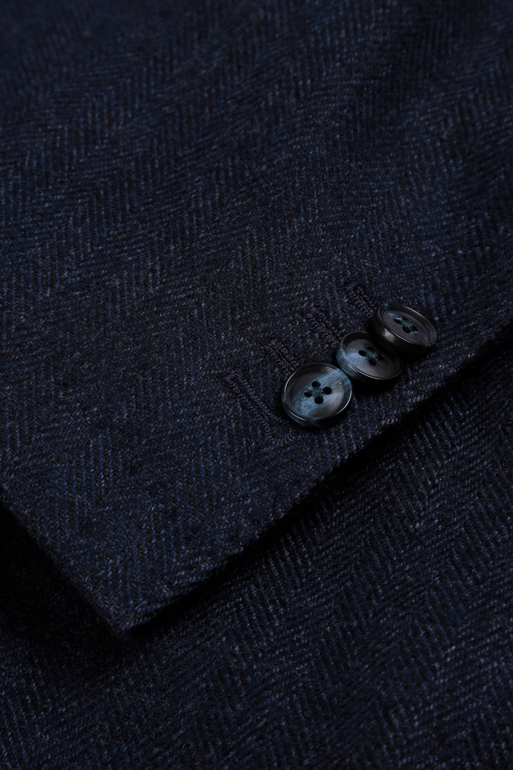 Blazer made of wool. Herringbone design. Three flap pockets. Two button fastening. Chest pocket with piping. Long sleeves.