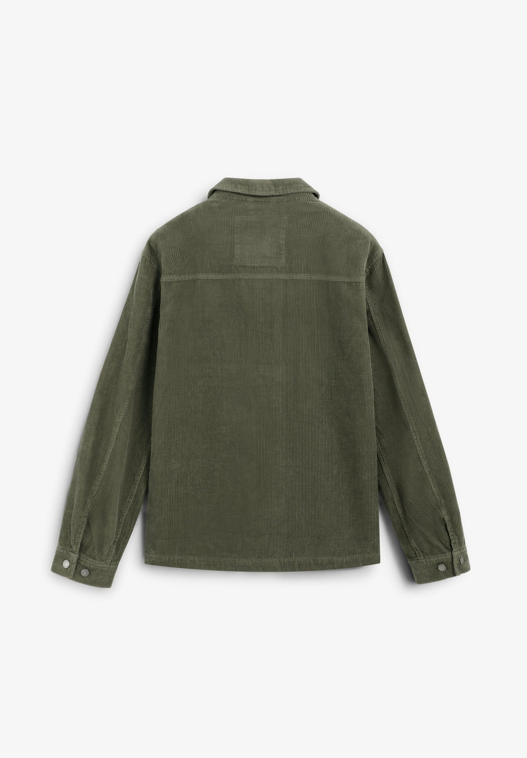 Corduroy overshirt made of 100% BCI cotton. Long sleeves. Shirt collar. Front button fastening. Two front pockets with flaps and patch design. Buttoned cuffs. Logo detail on buttons and label.