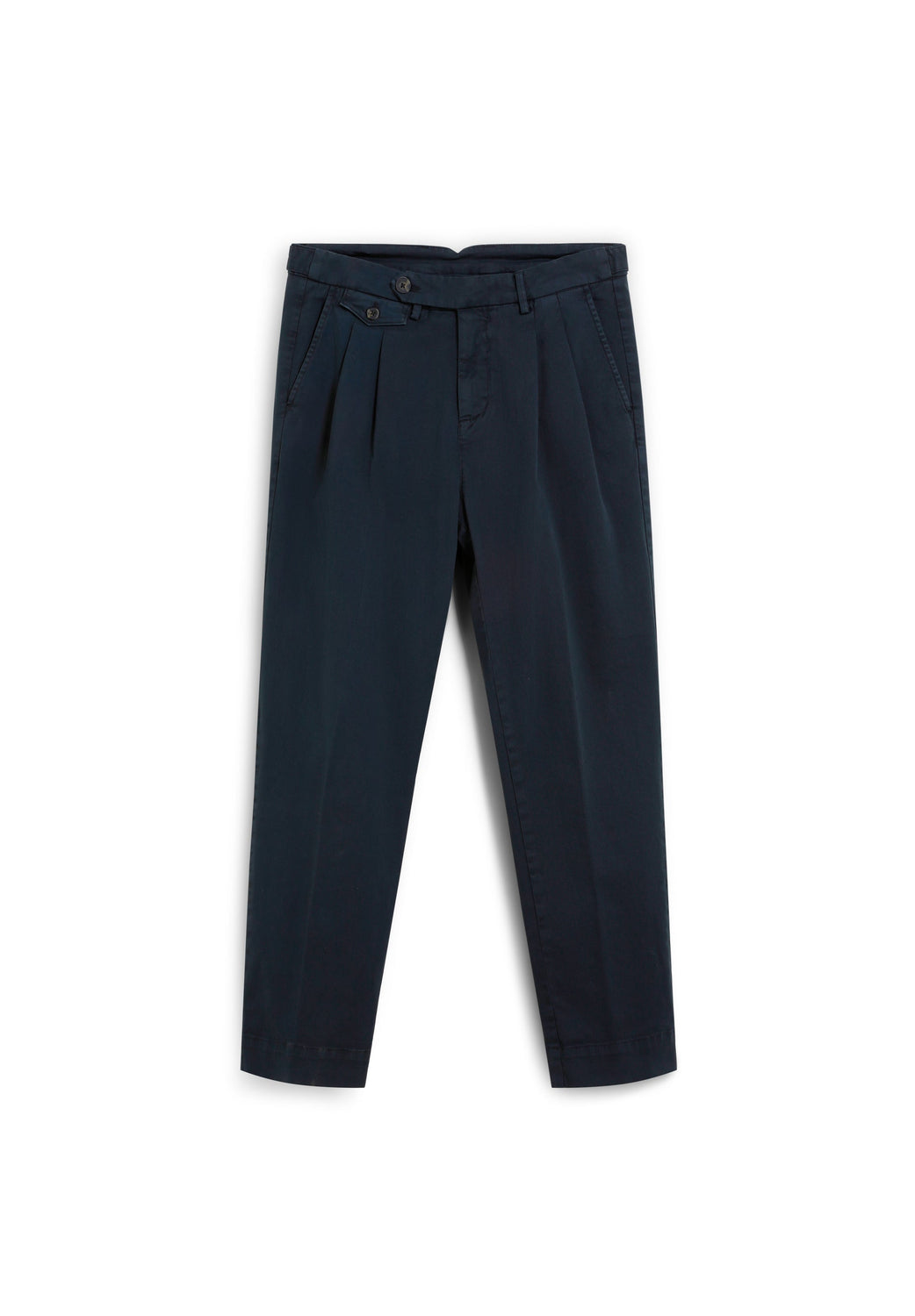 Cotton trousers with darts. Regular fit. Waistband with front pleat detail. Side pockets and back pockets with piped seam detail. Front zip and button fastening.