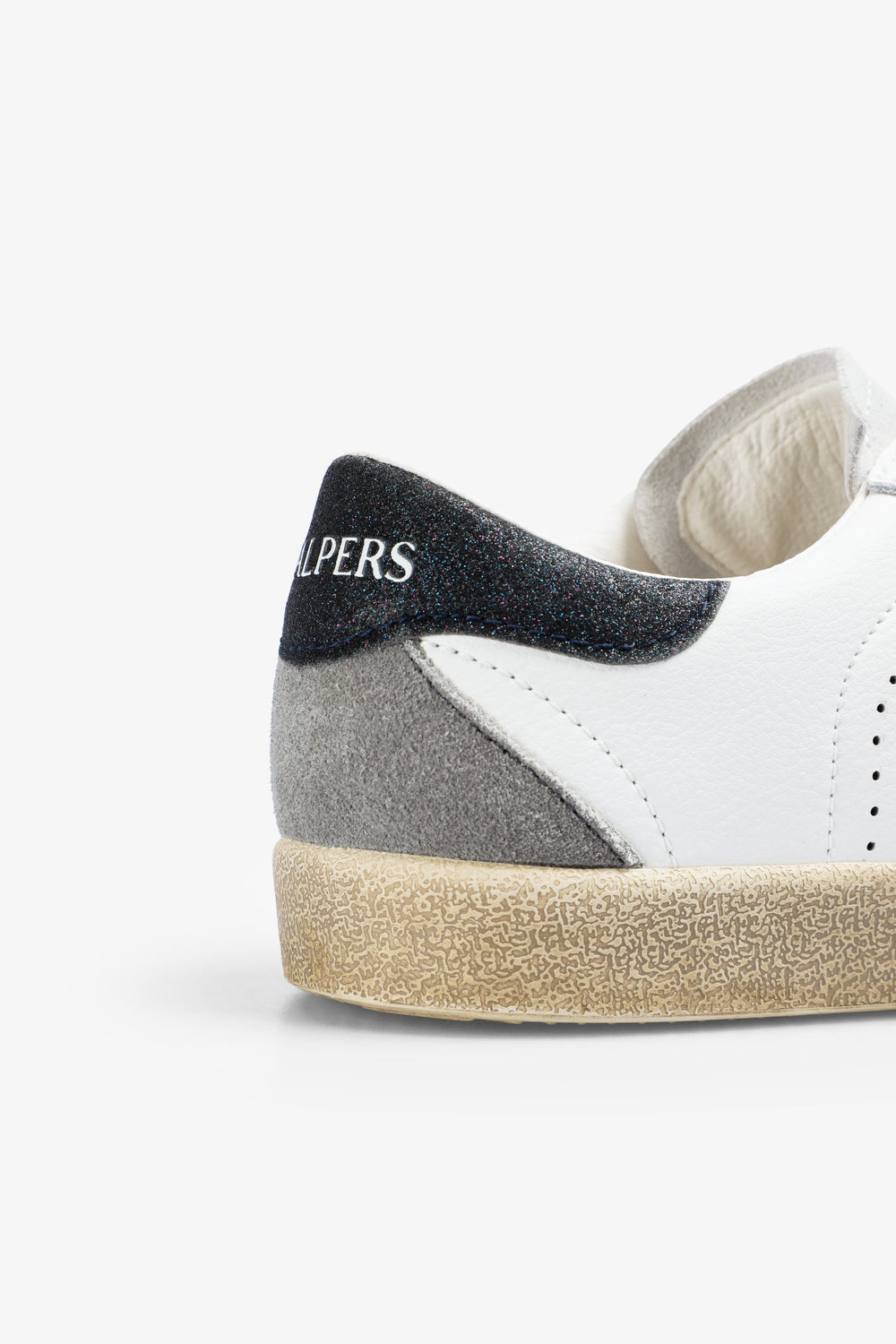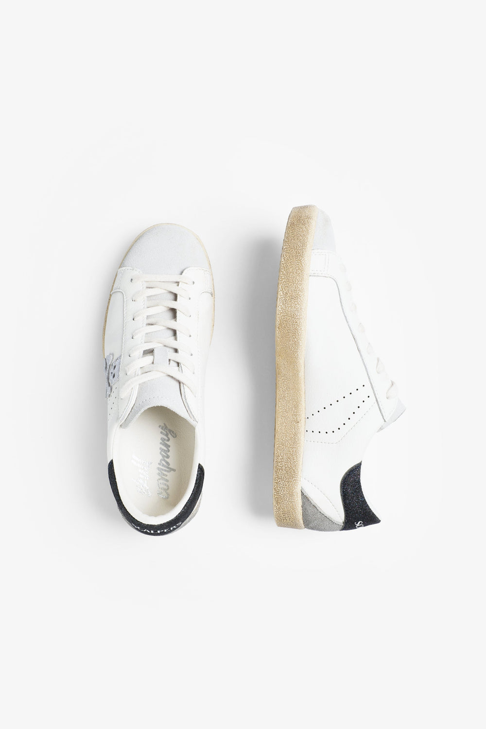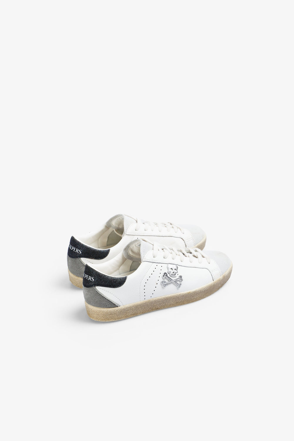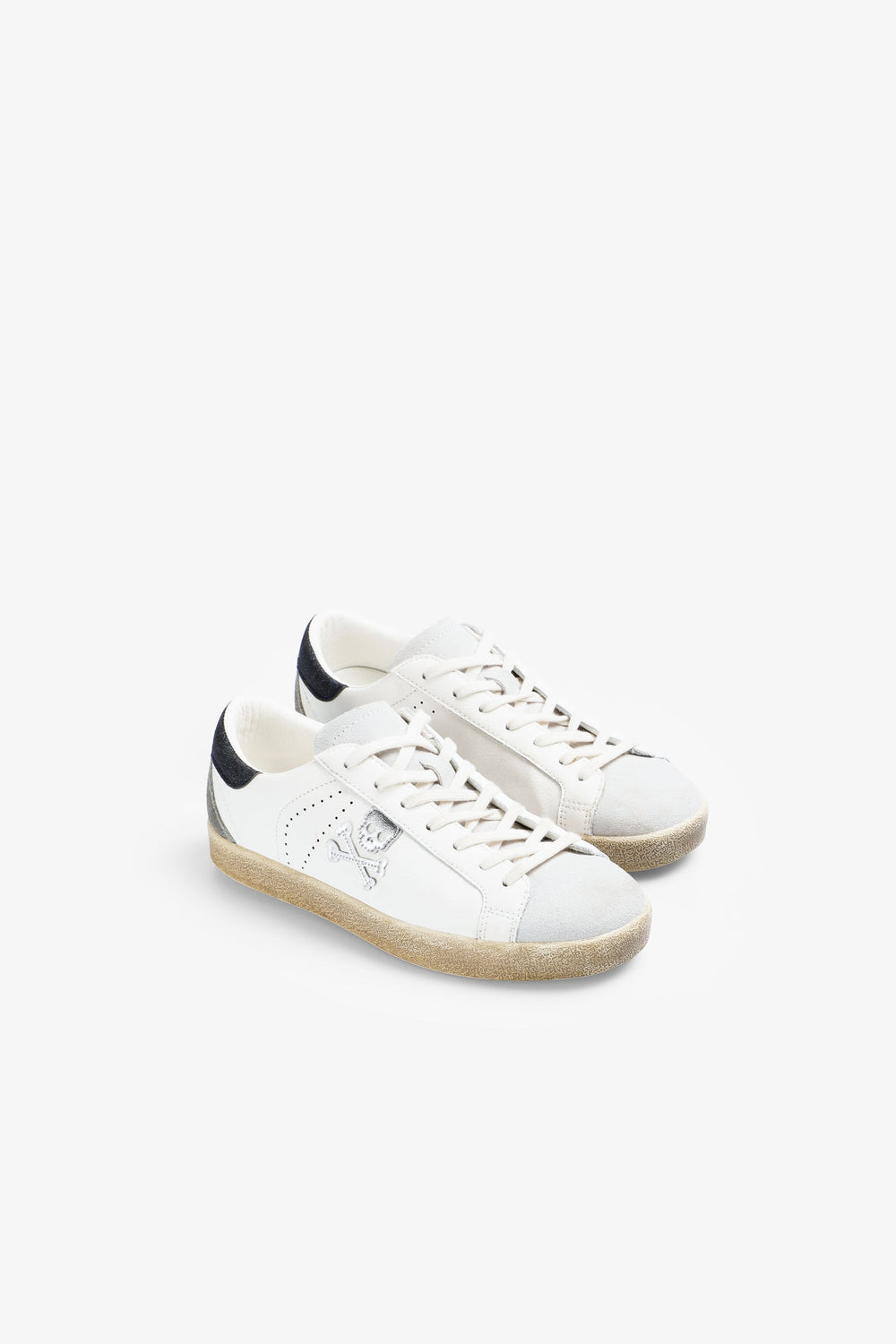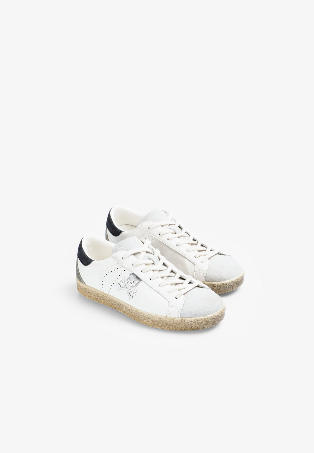 Low-top glitter sneakers with suede skull on the side. Contrasting lace-up fastening. Rubber sole Contrast suede details.