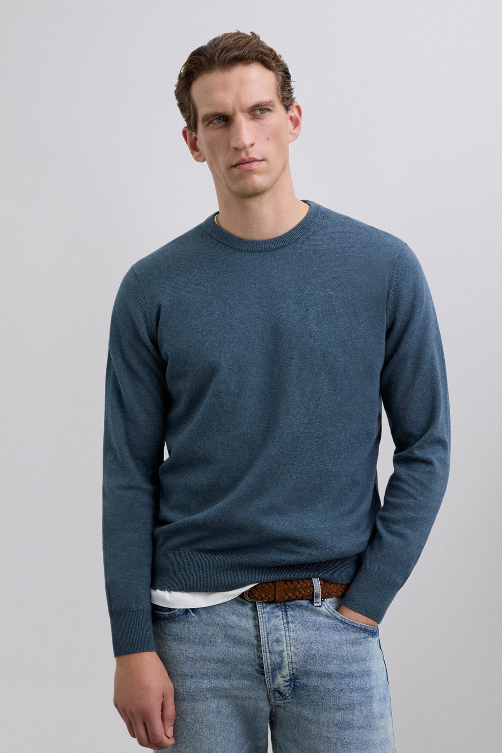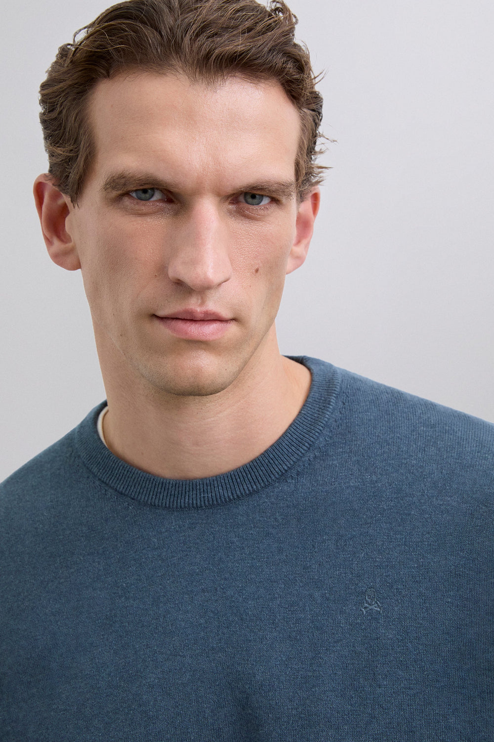 Sweater made of cotton. Long sleeves. Round neck. Matching embroidered skull detail on the chest. Ribbed trim.