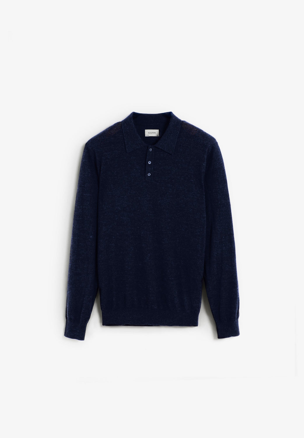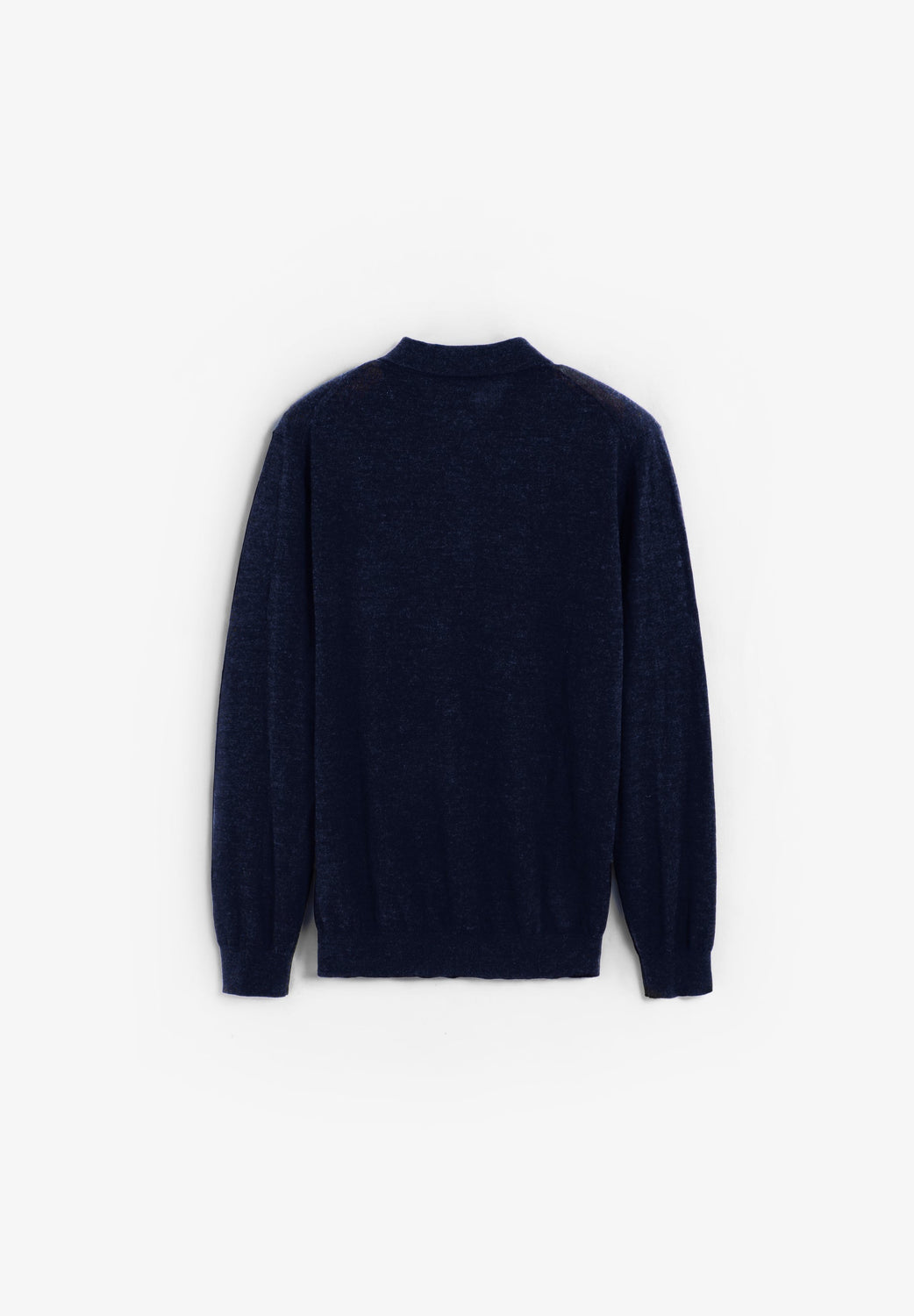 Sweater made of 100% wool. Long sleeves. Polo shirt collar. Button fastening.