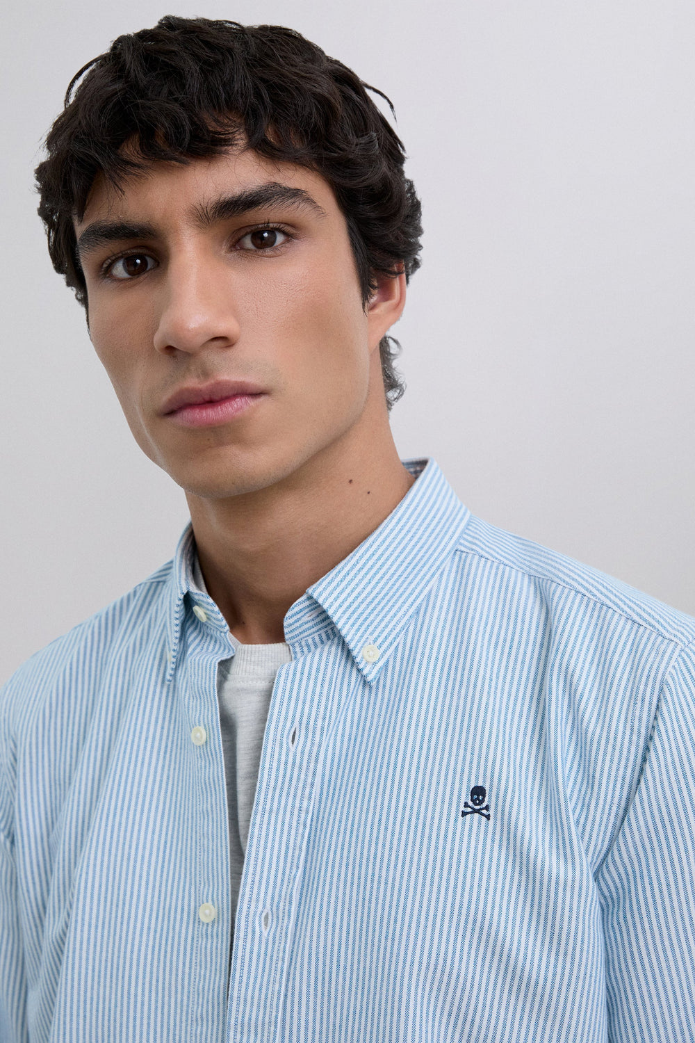 Oxford shirt made of 100% BCI cotton. Button fastening, Striped print. Long sleeves with button fastening. Contrast embroidered skull detail on the chest.