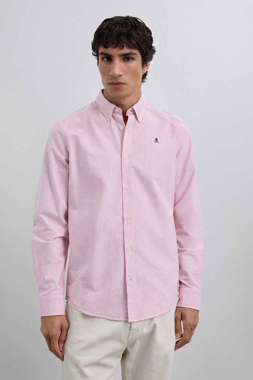 Oxford shirt made of 100% BCI cotton. Button fastening, Striped print. Long sleeves with button fastening. Contrast embroidered skull detail on the chest.
