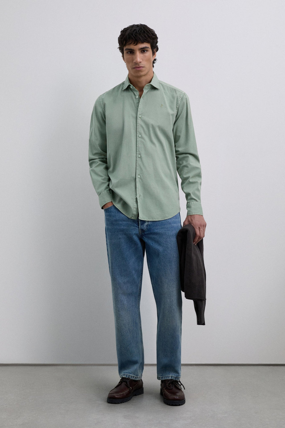 Shirt made of 100% BCI cotton. Front button fastening. Long sleeves with buttoned cuffs. Matching embroidered logo on the chest.