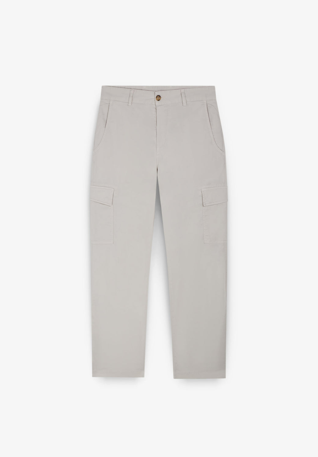 Pantalón confeccionado en Algodón. Cargo. Bolsillos laterales. Bolsillos en espalda. Cierre mediante cremallera en abotonadura en frontal.