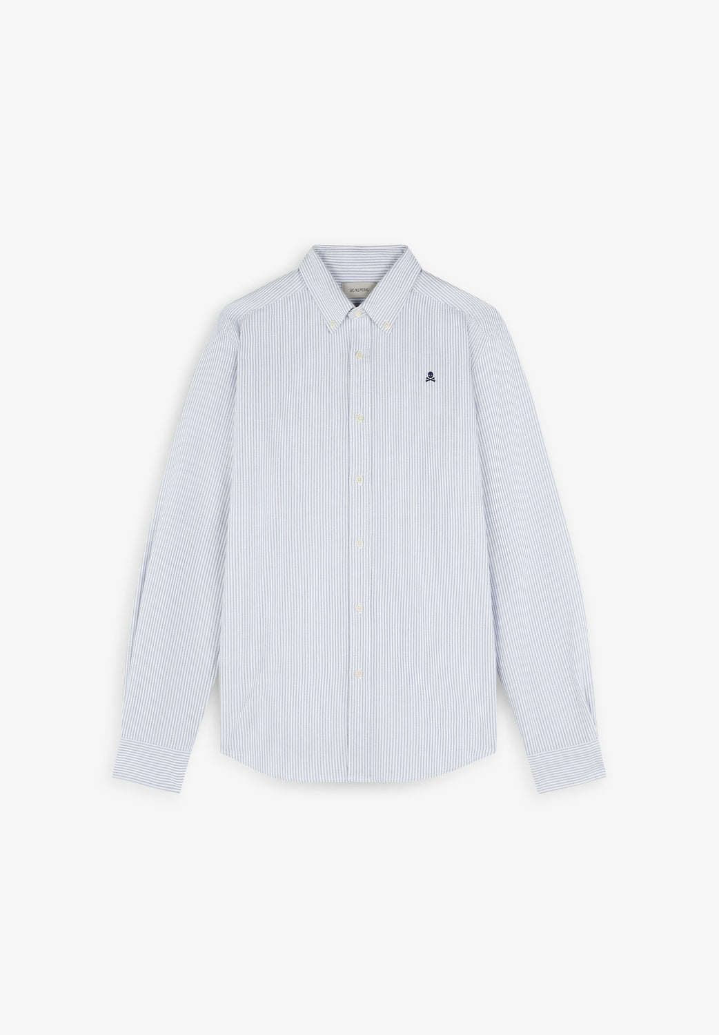 Striped shirt made of 100% BCI cotton. Classic collar, button fastening, slim fit, contrast skull on chest. Buttoned cuffs.