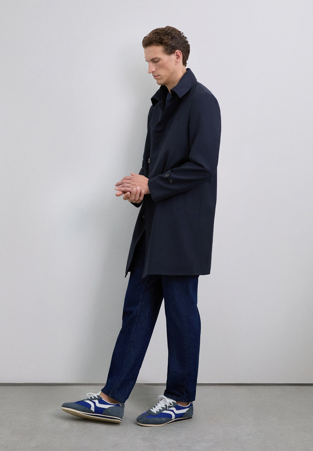Retro-style sneakers. Upper made from a combination of technical fabric pieces and split leather details. Thin sole with contrasting detail.