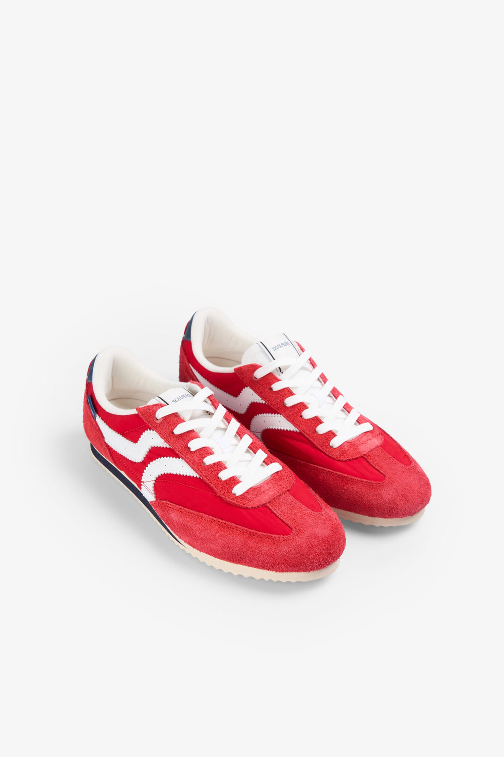 Retro-style sneakers. Upper made from a combination of technical fabric pieces and split leather details. Thin sole with contrasting detail.