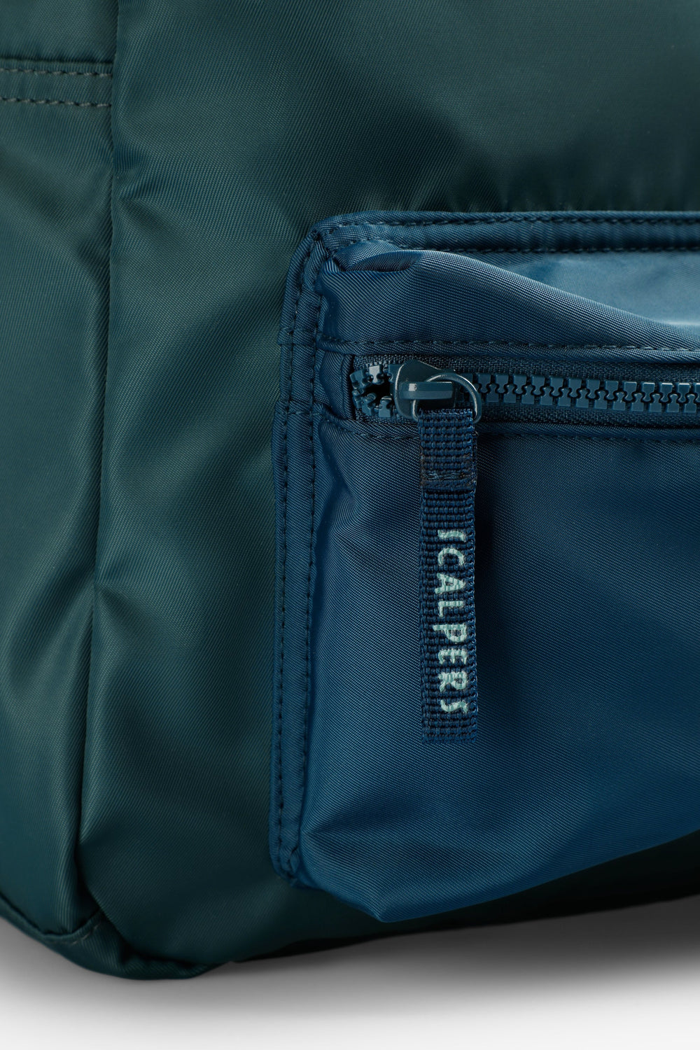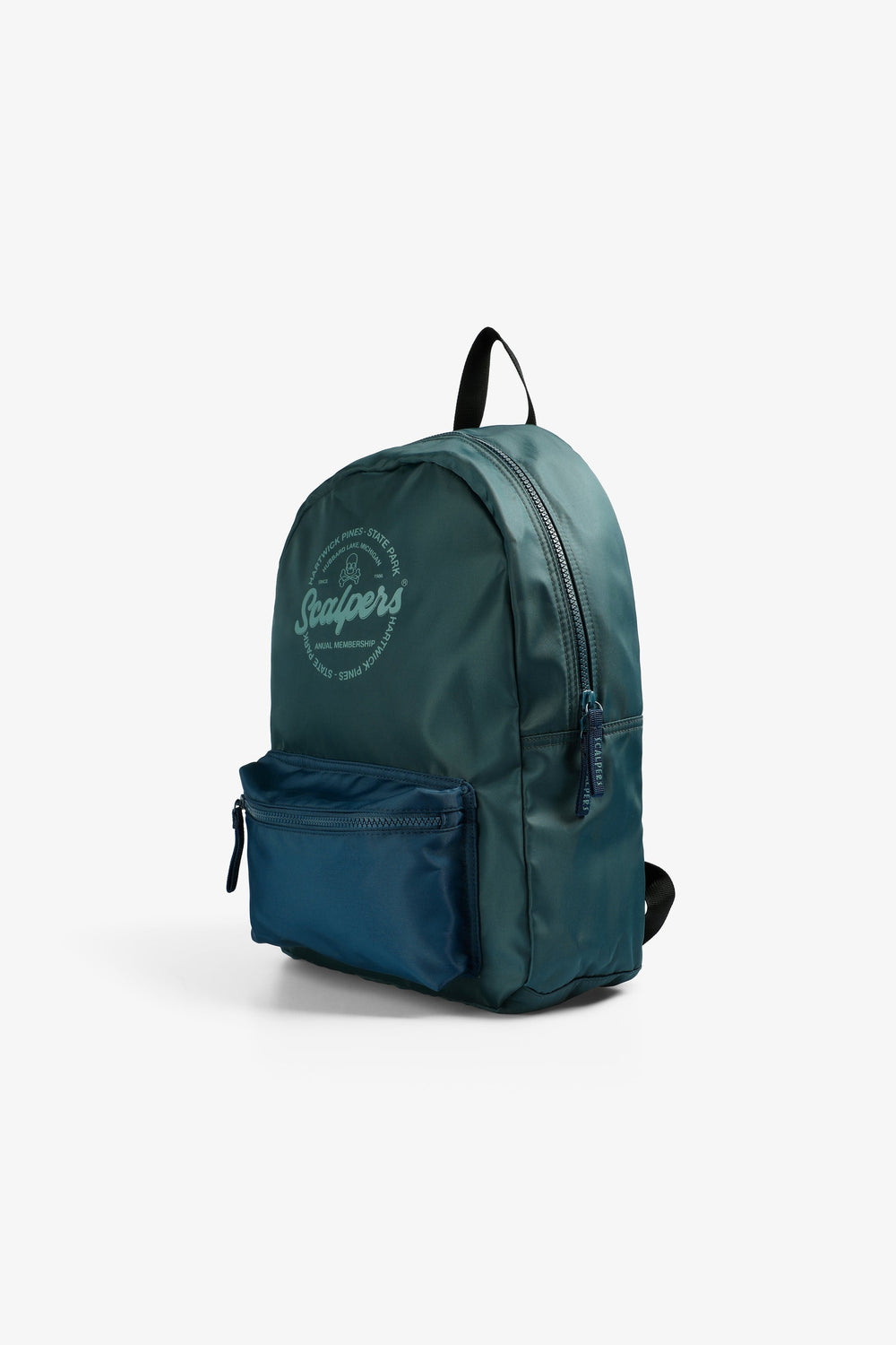 Backpack with front logo print. Made of 100% polyester. Zip fastening. Back straps. Top handle. Front zipped pocket. Height: 41 cm / Width: 31 cm / Depth: 14 cm