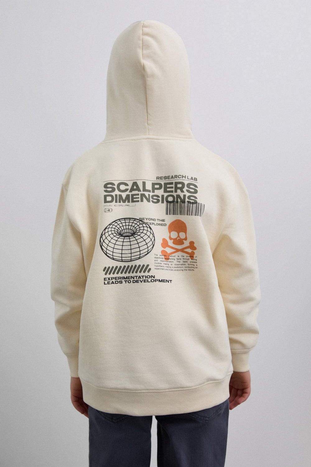 Sweatshirt with hood made of 100% BCI cotton. Long sleeves. Ribbed trim. Front pouch pockets. Print on the back and front.