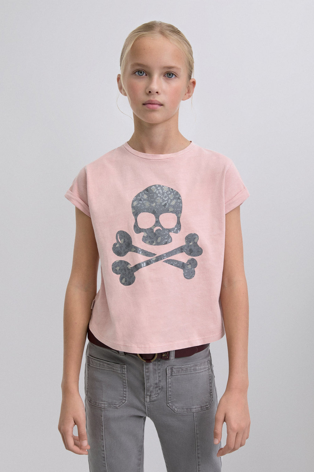 T-shirt made of 100% BCI cotton. Regular fit, round neck and short sleeves. Contrast front skull print on the chest.