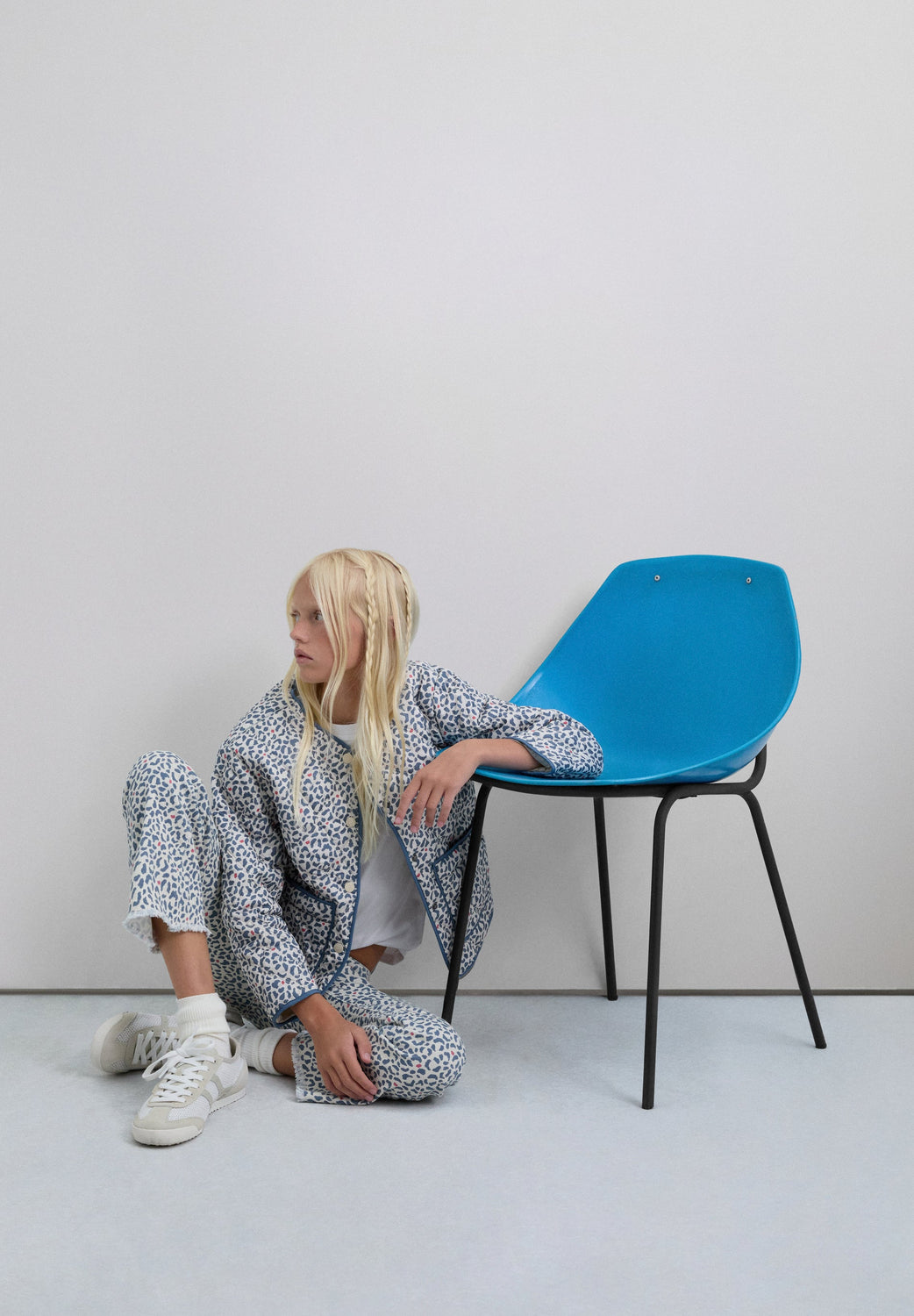 Puffer jacket made of a synthetic blend. Animal print. Button fastening. Slightly V-neck. Long sleeves. Two front pockets.
