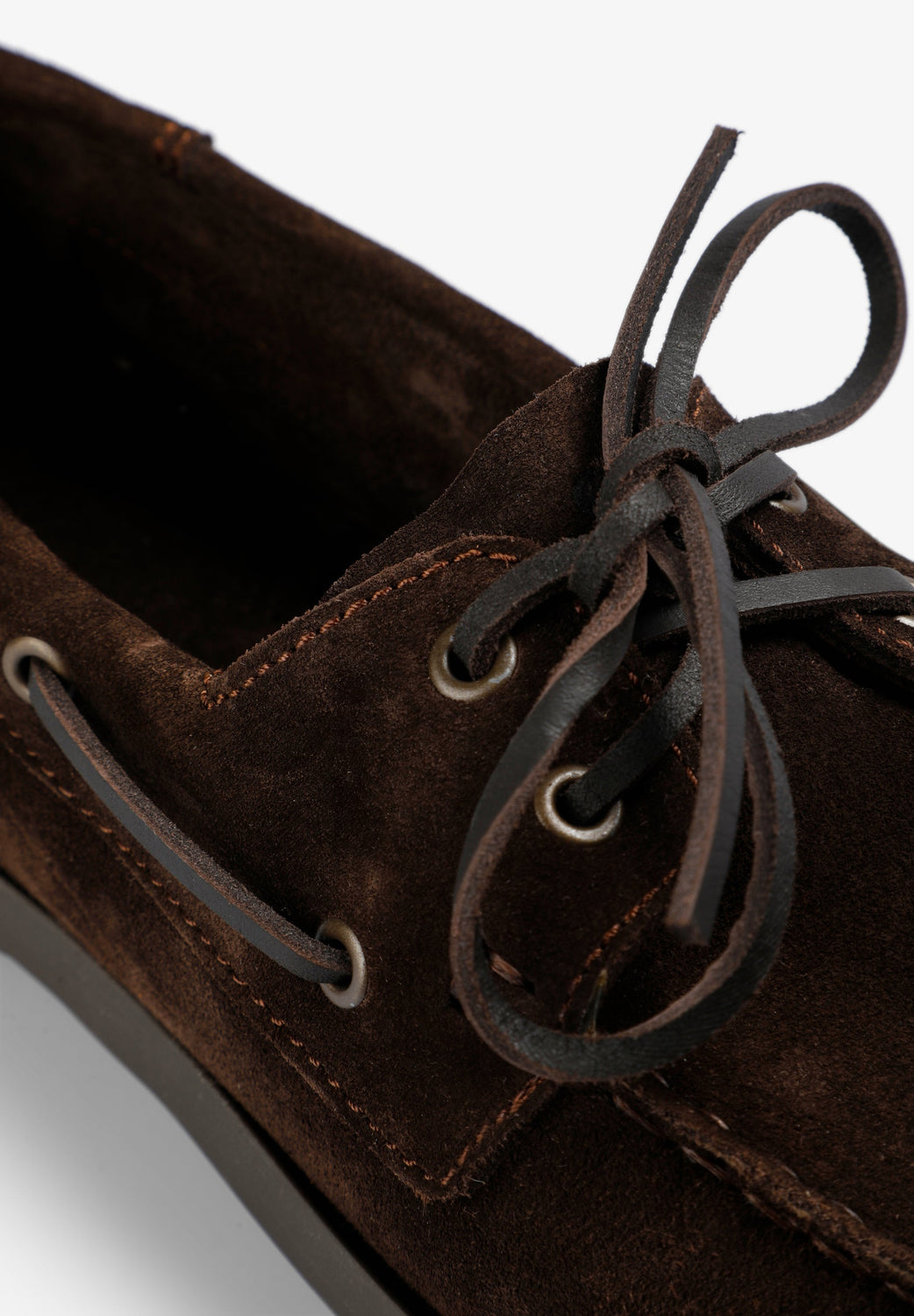 Plain-coloured deck shoes. Made of 100% leather. Matching lace-up fastening. Rubber matching sole. Logo label detail on the side