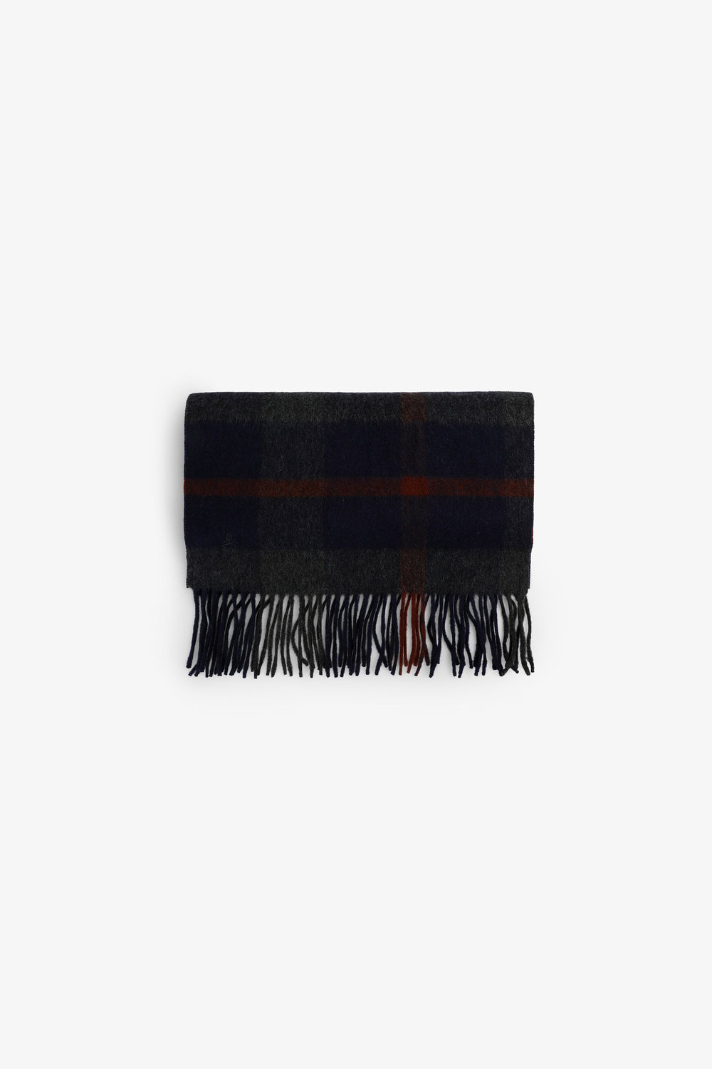 Scarf made of a wool and cashmere blend. Tartan print. Fringing. Embroidered logo. Label detail.