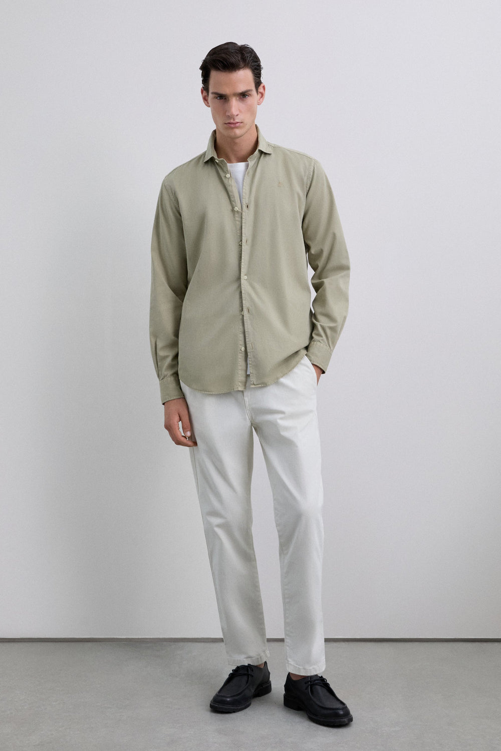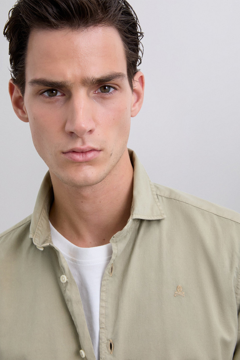 Shirt made of 100% organic cotton. Regular fit. Classic spread collar. Front button fastening. Long sleeves with buttoned cuffs. Patch pocket on the chest. Sleeve placket. Matching embroidered skull detail.