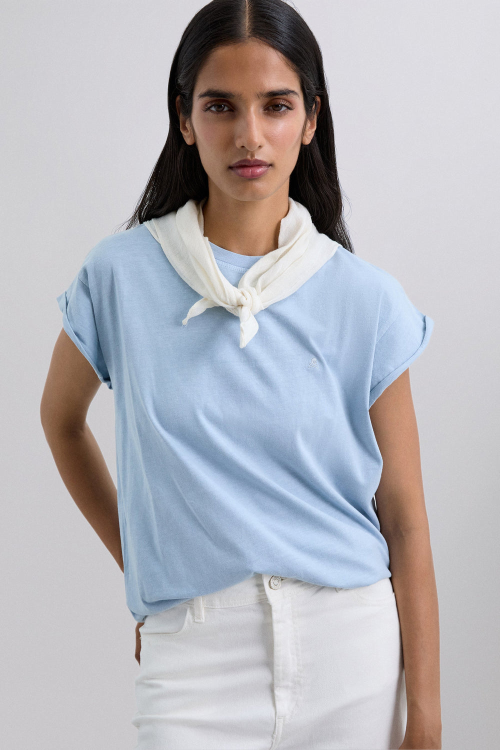 T-shirt made of 100% organic cotton. Regular fit, round neck and sleeveless. Matching embroidered logo detail on the chest.