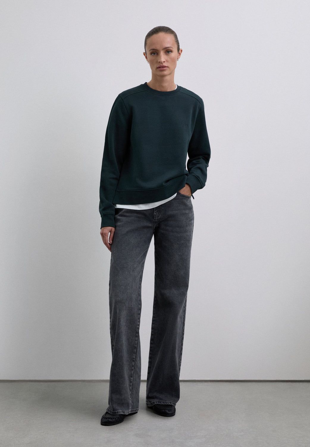 Sweatshirt made of 100% organic cotton. Regular fit, round neck and long sleeves with ribbed cuffs. Asymmetric hem, longer back. Embroidered skull detail on the chest.