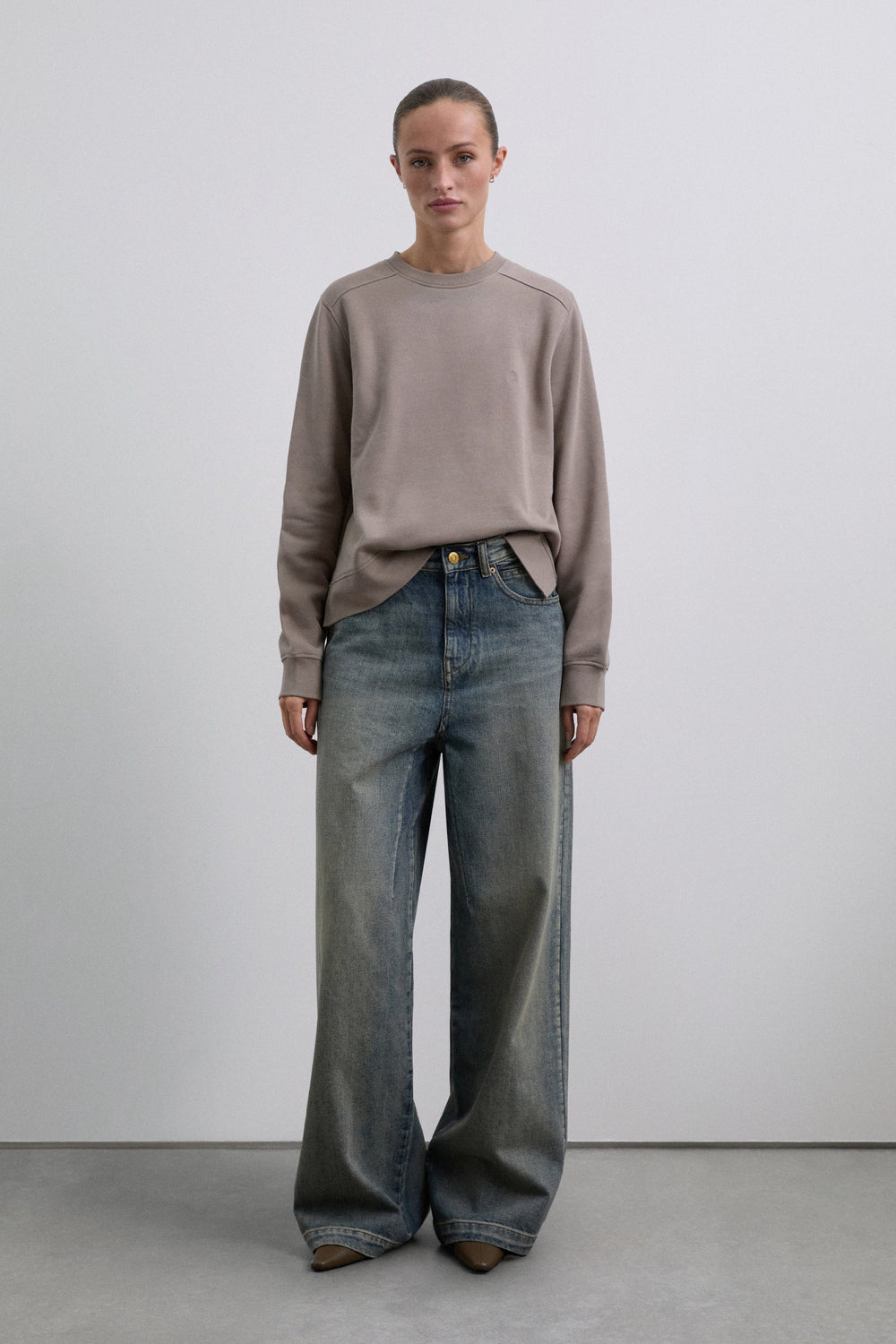Sweatshirt made of 100% organic cotton. Regular fit, round neck and long sleeves with ribbed cuffs. Asymmetric hem, longer back. Embroidered skull detail on the chest.