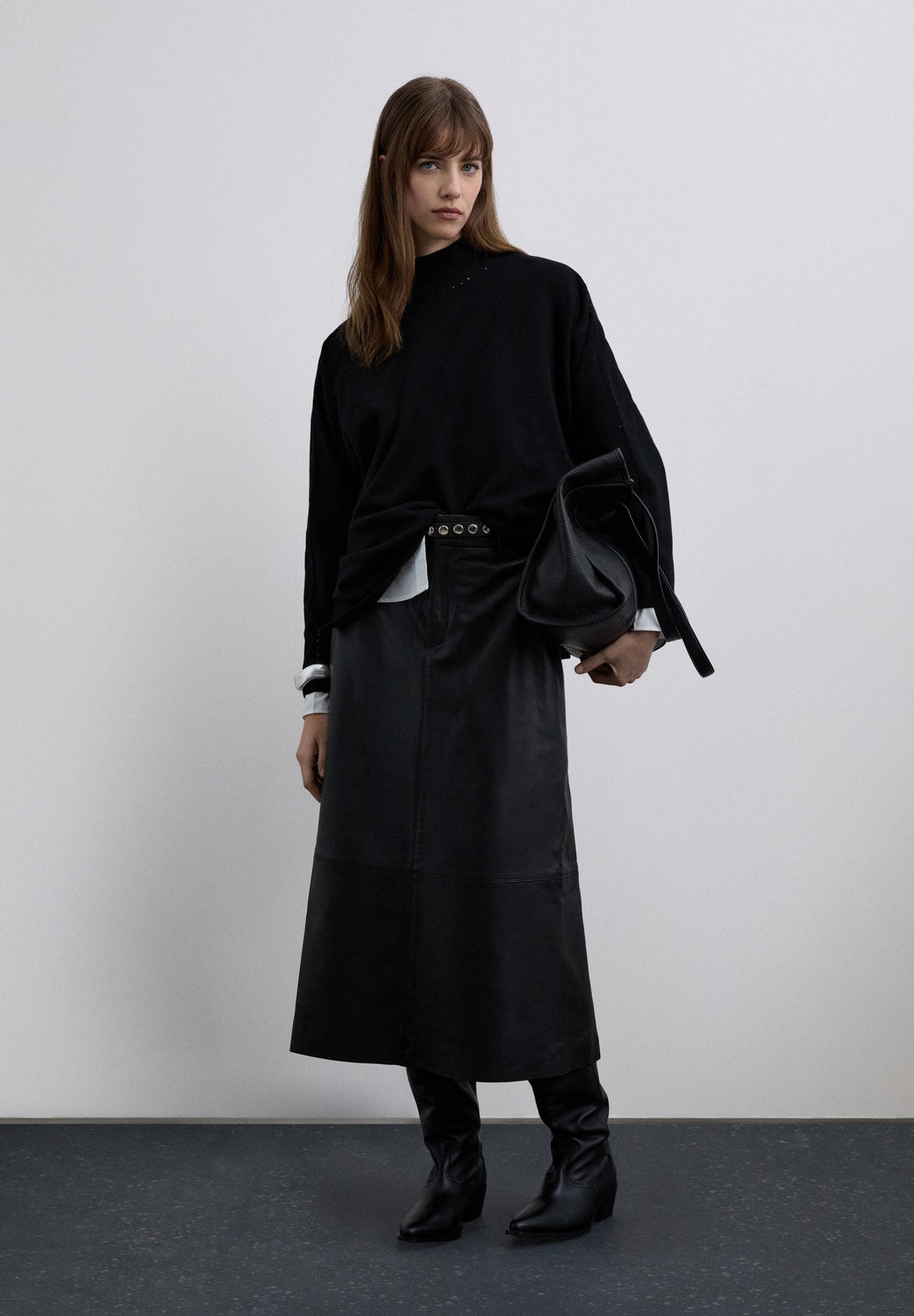 High neck sweater made of a wool blend. Regular fit. Long sleeves. Mini cutout detailing on the front, neck and sleeves.