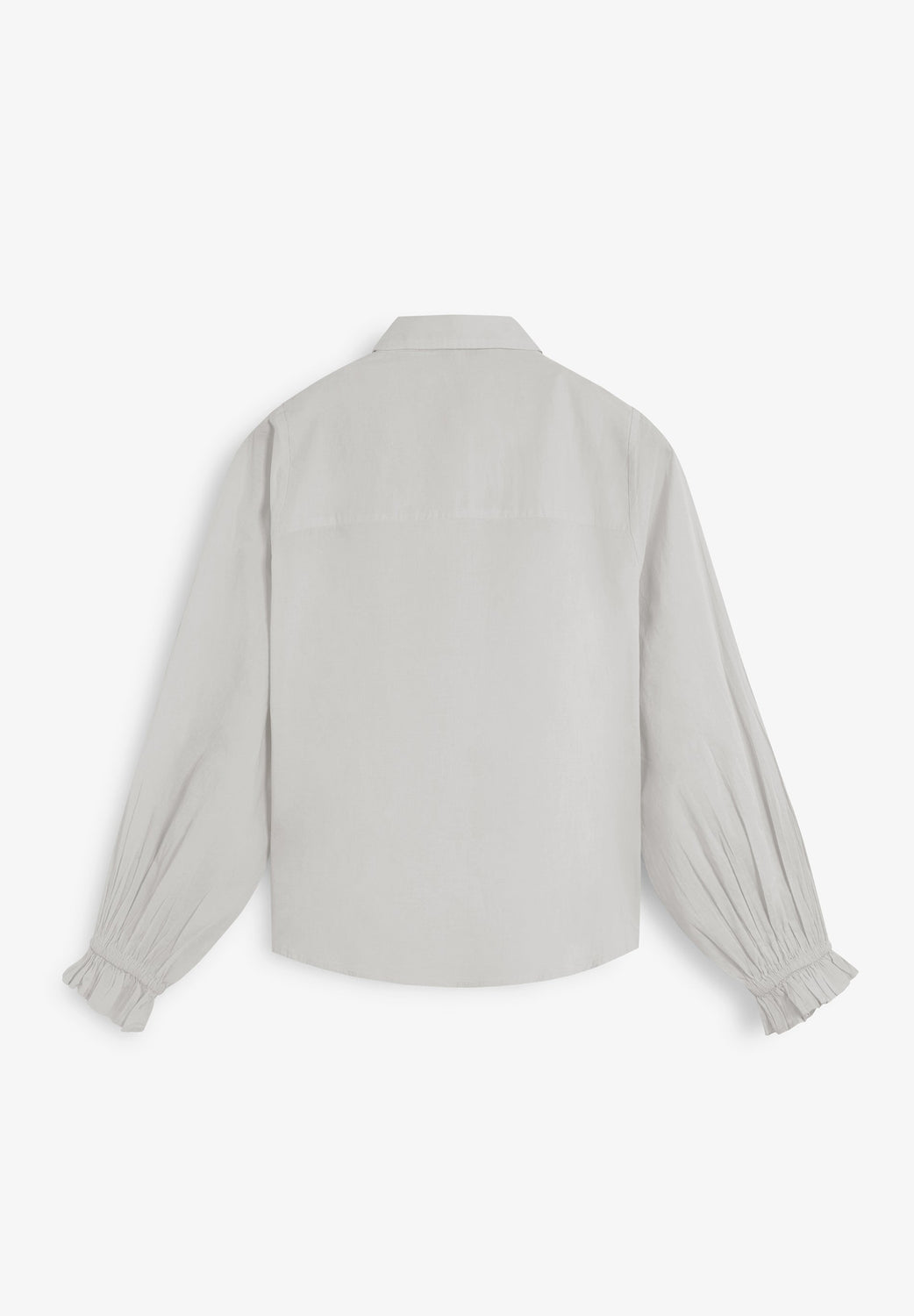 Blouse made of 100% cotton fabric. Regular fit. Classic collar. Yoke detail. Long sleeves with elasticated cuffs with slight frill. Button fastening.