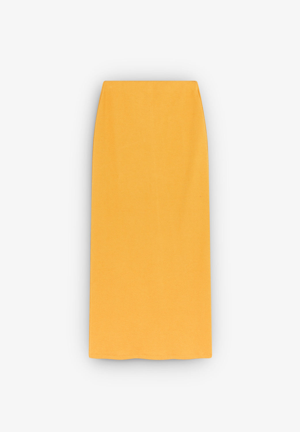 This skirt is designed in collaboration with Scalpers and belongs to the ROBIN x SCALPERS collection. Midi skirt made in Organic BCI Cotton. Slightly elastic waist. Hem with back slit.